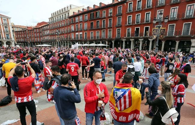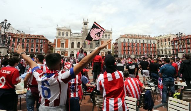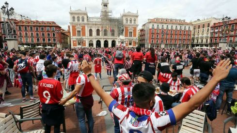 Miles de aficionados del Atlético de Madrid en la Plaza Mayor de Valladolid
