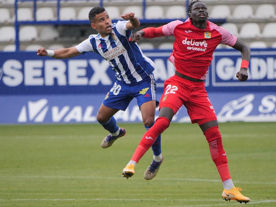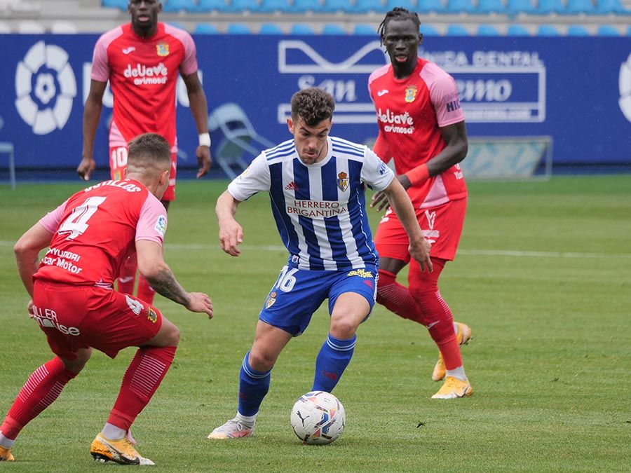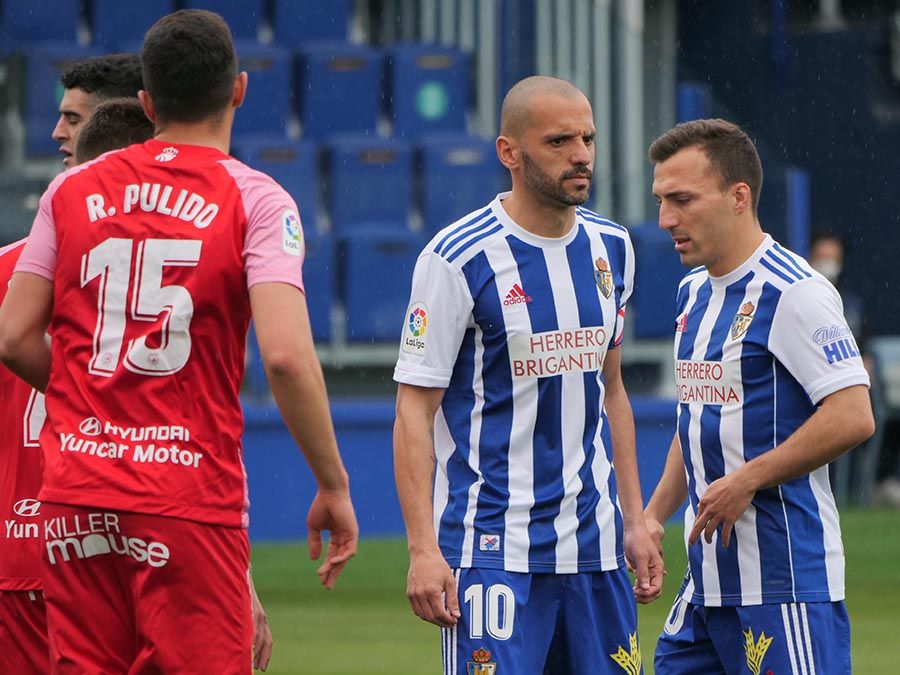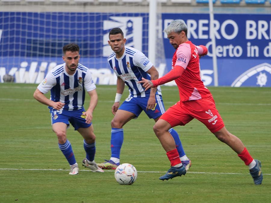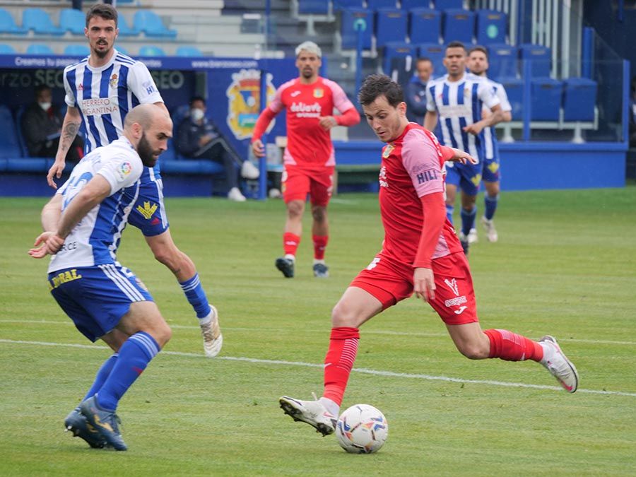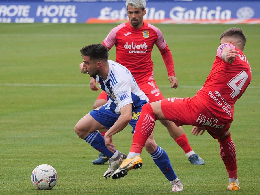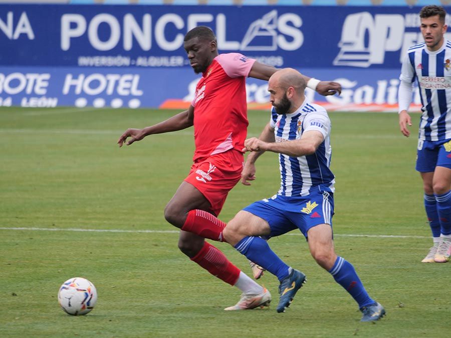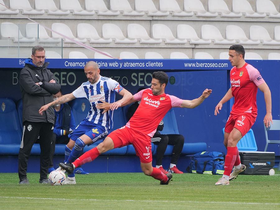 No habría goles en el primer tiempo, pero se trató de soltar la presión la escuadra berciana por medio de un Curro Sánchez que quiso sorprender con un disparo lejano. Habían pasado bastantes minutos desde el gol anulado a Pablo Valcarce al rematar en posición antirreglamentaria una falta lateral. El juego a balón parado parecía la mejor opción de los bercianos, que estuvieron a punto de sorprender en un saque de esquina peinado por Doncel que se fue por encima del marco fuenlabreño. Tomaron la iniciativa del encuentro y quizá la mejor ocasión llegó con una combinación entre Yuri y Curro que el extremo no pudo resolver después de recibir un exquisito pase de tacón del brasileño.
