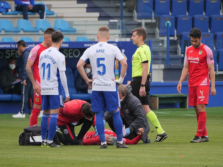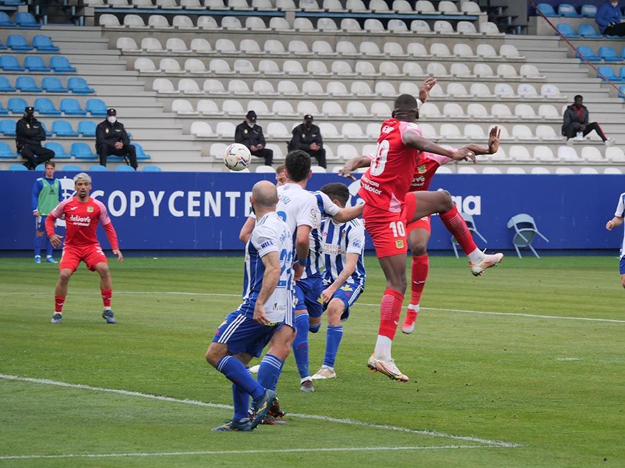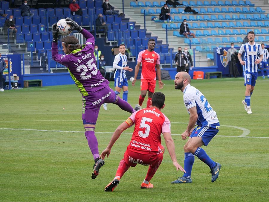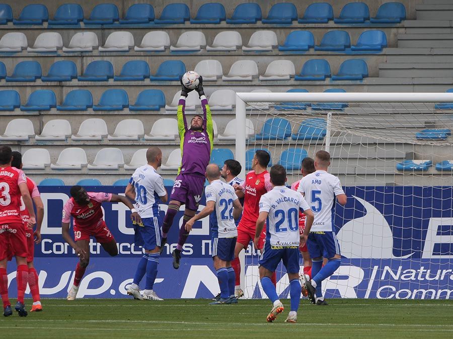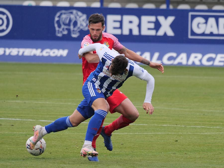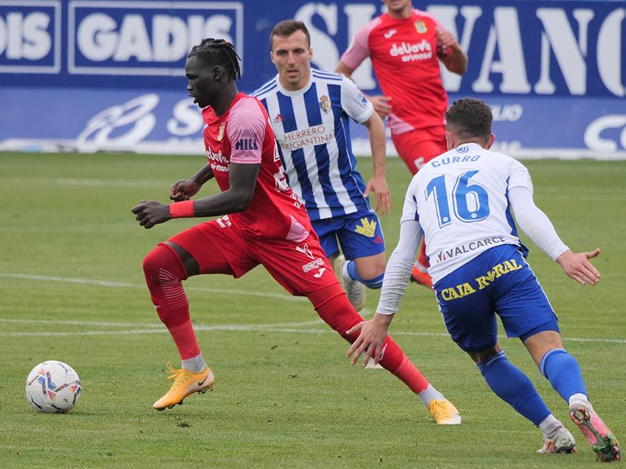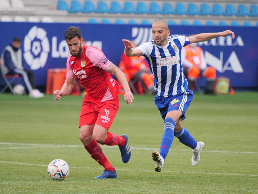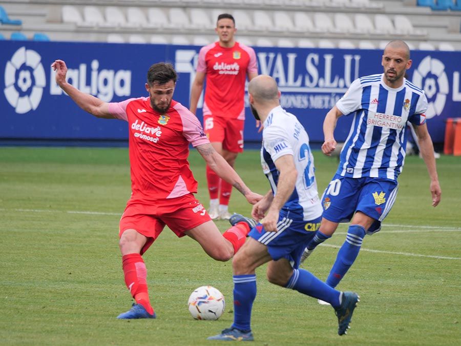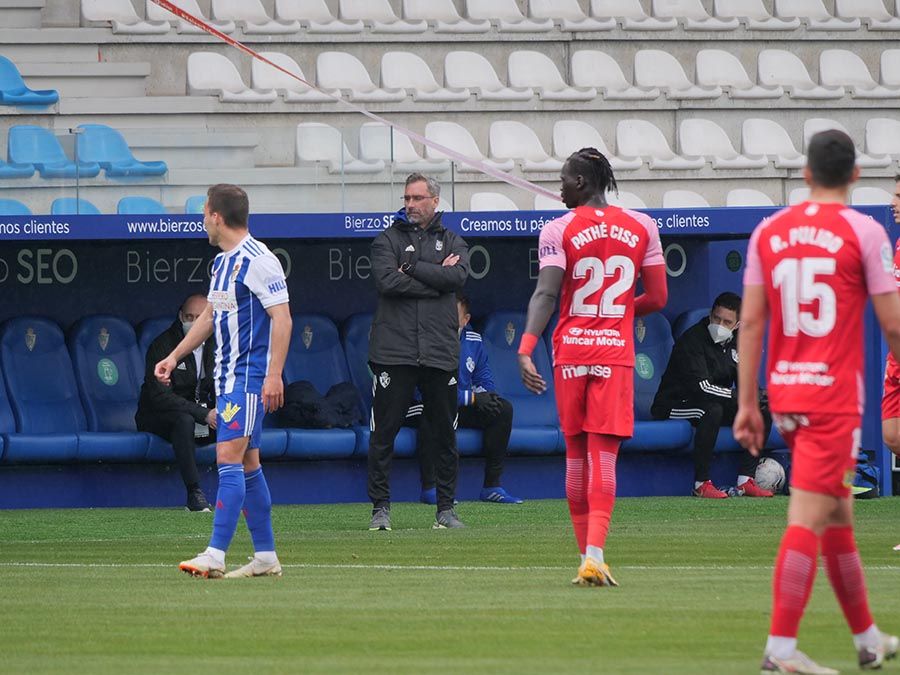 No habría goles en el primer tiempo, pero se trató de soltar la presión la escuadra berciana por medio de un Curro Sánchez que quiso sorprender con un disparo lejano. Habían pasado bastantes minutos desde el gol anulado a Pablo Valcarce al rematar en posición antirreglamentaria una falta lateral. El juego a balón parado parecía la mejor opción de los bercianos, que estuvieron a punto de sorprender en un saque de esquina peinado por Doncel que se fue por encima del marco fuenlabreño. Tomaron la iniciativa del encuentro y quizá la mejor ocasión llegó con una combinación entre Yuri y Curro que el extremo no pudo resolver después de recibir un exquisito pase de tacón del brasileño.