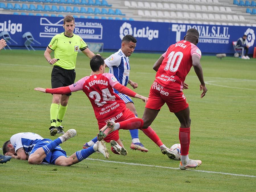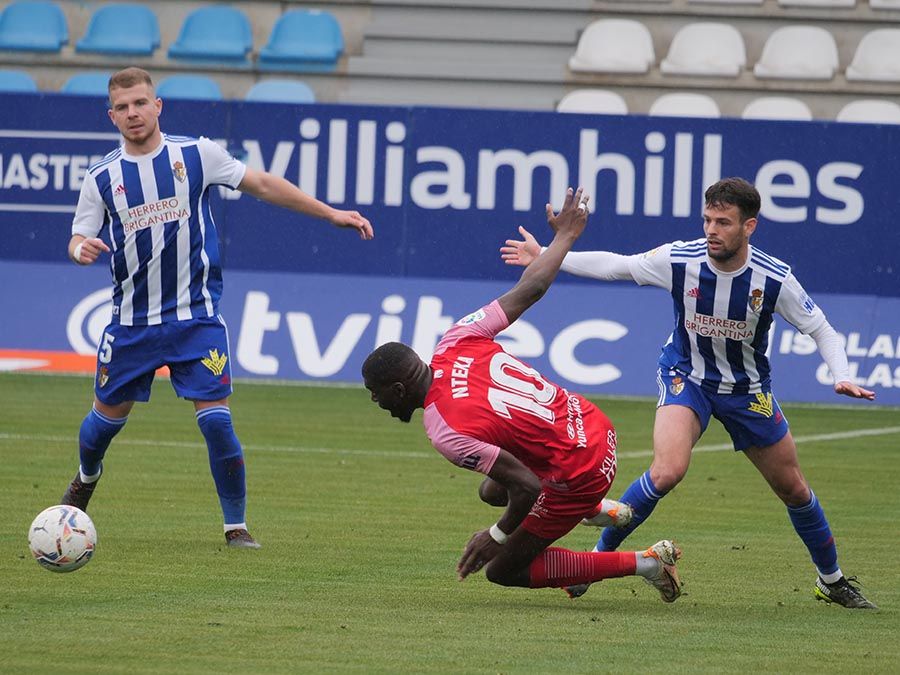 Siempre es bueno sacar un punto, y más cuando lo ves perdido. Aunque por momentos pudo ser merecedora de más, la Deportiva Ponferradina se alegró porque el árbitro, a instancias del VAR, anuló un tanto de Nteka en el tramo final que habría supuesto la derrota casi segura de los bercianos. No hubo goles, pero sí ocasiones para romper un 0-0 que aleja a los blanquiazules de un sueño, el de disputar el play-off de ascenso, que ahora verse complicado para los de la capital berciana.