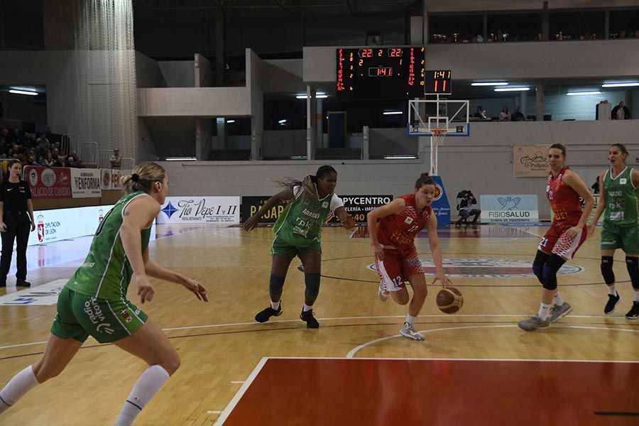 Aún apretó más el resultado el conjunto berciano, que se vio condicionado por la cuarta personal de Llorente en el primer minuto de este cuarto periodo. El triple de Butina, una canasta de Gladkova tras posible empujón de Seda y otra sola de la rusa puso el duelo en un pañuelo (47-48) e incluso las bercianas pudieron ponerse por delante. Sin embargo, un robo de Tania Pérez definido con una penetración volvió a ampliar la renta visitante antes de que dos triples del cuadro visitante fracturaran definitivamente el choque antes del definitivo 53-66.