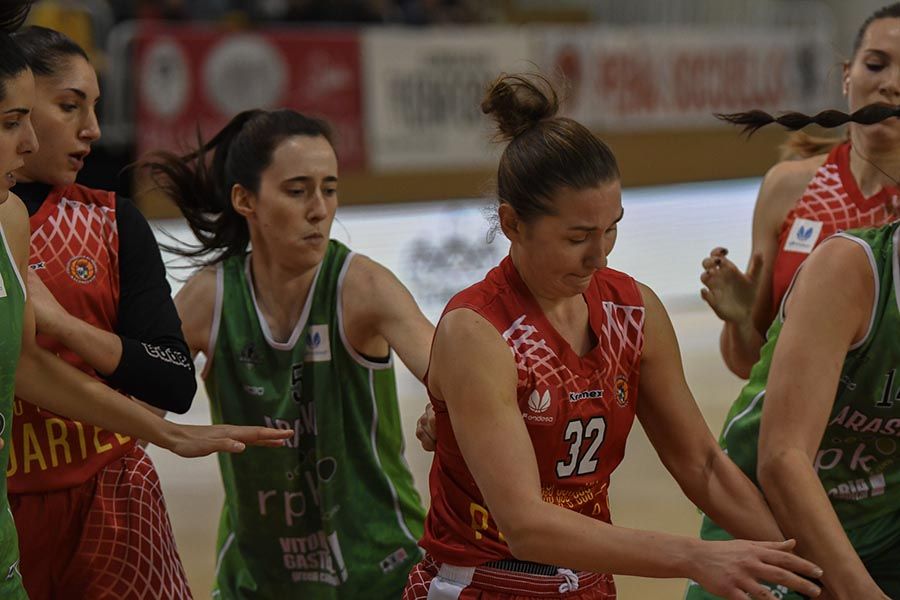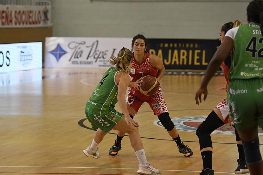 Aguantó bien en los primeros compases el cuadro berciano, que sufría, eso sí, ante los empujones reclamados reiteradamente en los rebotes ofensivos de una Tamara Seda que dominó con su fuerza en las inmediaciones del aro local. Respondió Vicky Llorente, no obstante, para mantener a su equipo con exiguas rentas. Se empezó a caldear el ambiente cuando los colegiados devolvieron una posesión a las vitorianas después de que una de sus jugadoras impulsara el balón hacia la línea de fondo con el pie. Las de Made Urieta acabaron con ventaja (6-9) el primer cuarto después de que las rojillas erraran varios ataques de forma consecutiva.