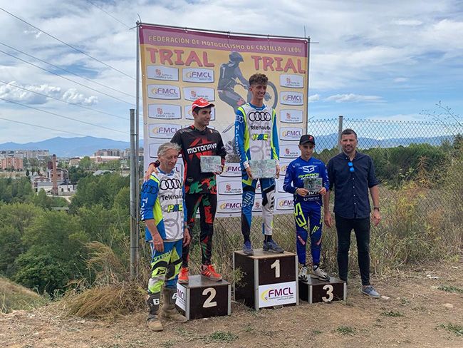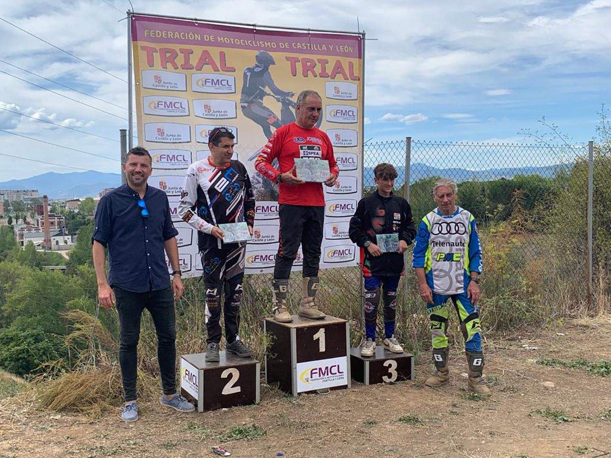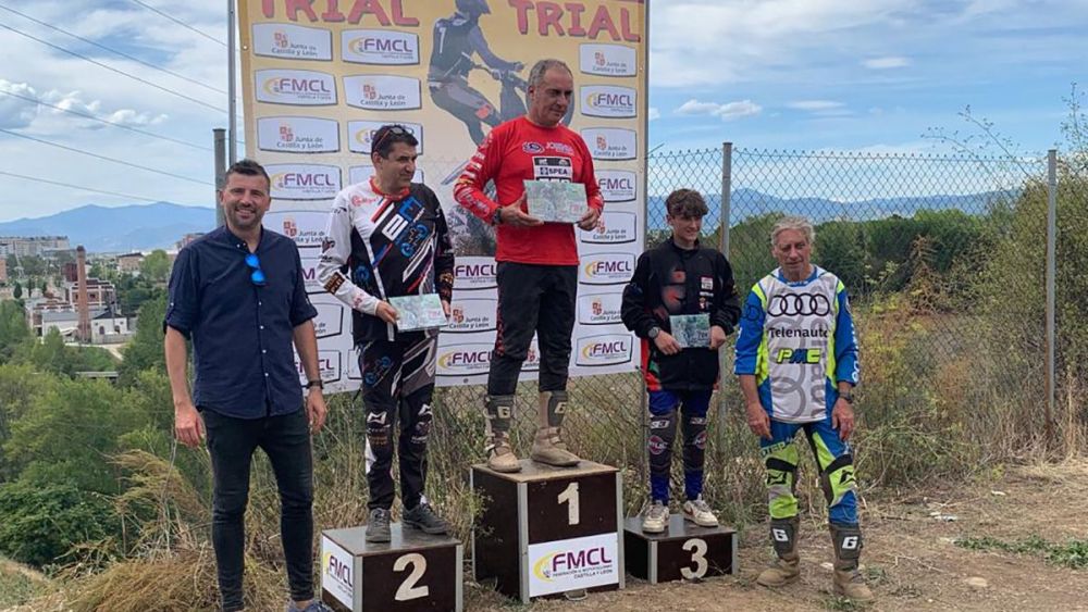 El concejal de Deportes del Ayuntamiento de Ponferrada, Iván Castrillo, entregó los trofeos a los ganadores de la competición de Trial Encina 22 que se disputó en un circuito ubicado en el paraje de las Fraguas de Roldán.