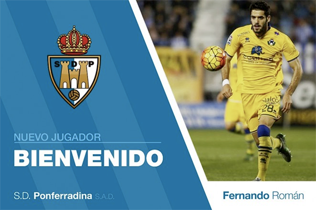 El defensa central Fernando Román se convierte, tras los fichajes de Jon García y Jorge García, en la tercera cara nueva de la Deportiva Ponferradina para la temporada 2017-2018. Nacido en Madrid hace 23 años (cumplirá 24 el próximo 20 de agosto), llega al Bierzo tras jugar la última campaña en el Hércules, en el que militó en calidad de cedido por el Alcorcón. De 194 centímetros de estatura, es hijo del histórico jugador de balonmano ’Juanqui’ Román, que llegó a ser internacional con España y desarrolló casi toda su carrera en el Atlético de Madrid.