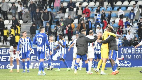 S. D. Huesca, 0: Andrés; Ratiu, Jorge Pulido, Blasco, Vilarrasa; Soko (Valentín, min 75), Óscar Sielva (Salvador, min 46), Timor, Manu Rico (Mateu, min 61); Kanté (Real, min 61) y Escriche (Carrillo, min 61). –Entrenador: Cuco Ziganda.
