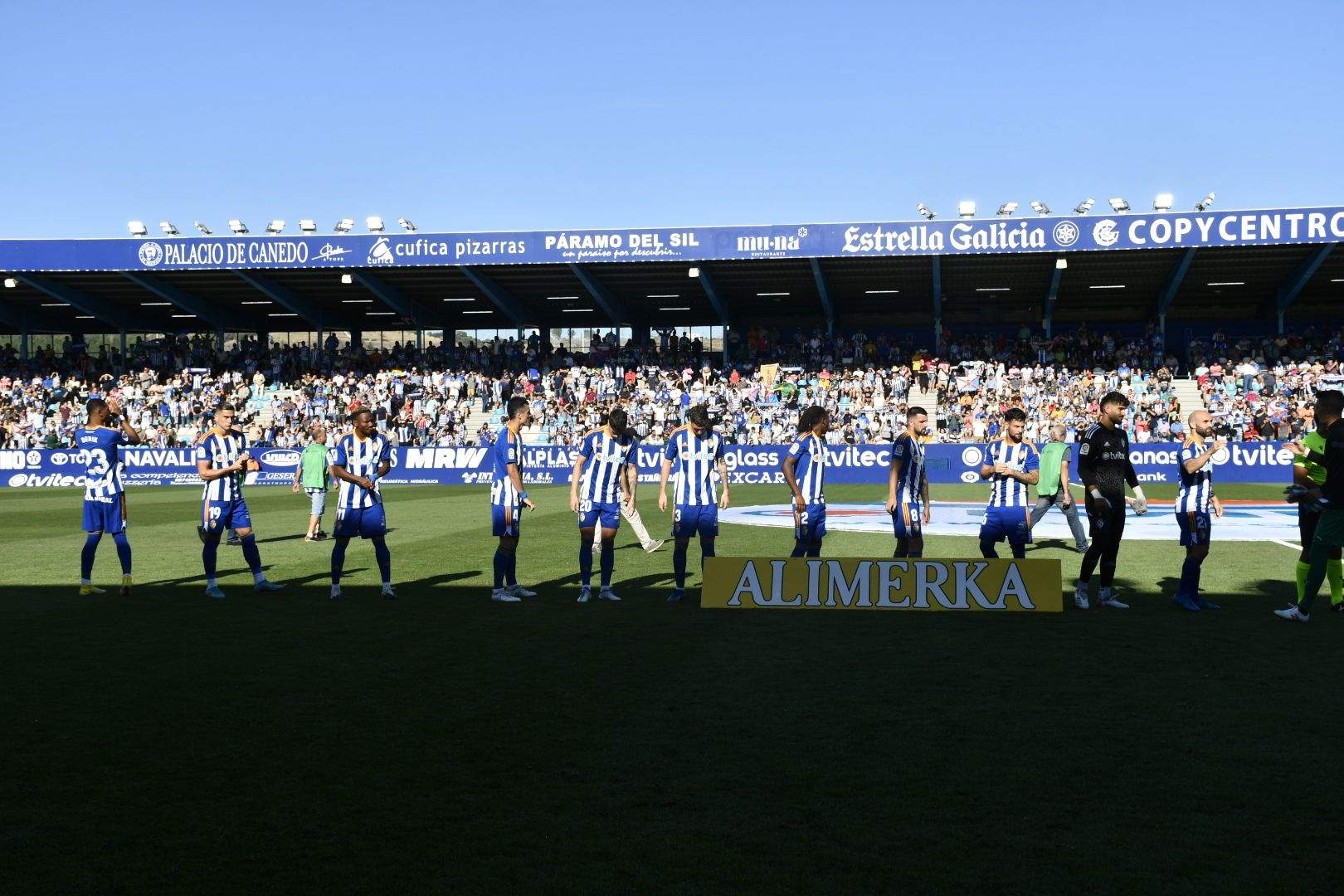 PONFERRADINA, 1: Amir Abedzadeh; Paris Adot, Pascanu, Diéguez, Moi Delgado (Lukaku, min 80); Aldair (Tavares, min 46), Agus Medina (Erik Morán, min 80), Nwakali, Naranjo; Edu Espiau (Vallejo, min 46)y Derik Lacerda (Raúl, min 90). -Entrenador: José Gomes.