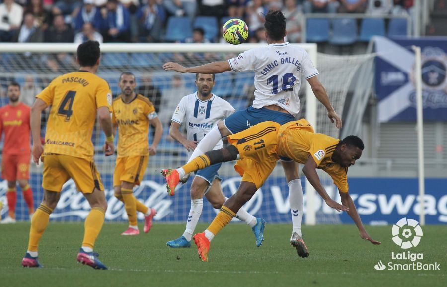 Remate fallado por Samuel Shashoua (Tenerife) desde el centro del área que se le va demasiado alto. Asistencia de Enric Gallego con un centro al área. Empieza a encontrar área el Tenerife.