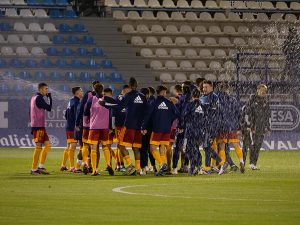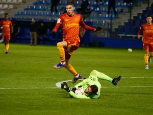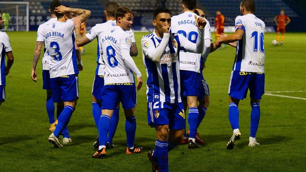 Real Zaragoza, 1: Cristian Álvarez; Vigaray (Azón, min 82), Amador, Guitián, Pep Chavarría; Francho, Eguaras (Vuckic, min 82), Igbekeme; Zanimacchia (Larrazabal, min 59), Narváez y Bermejo (Sola, min 59). -Entrenador: Iván Martínez.