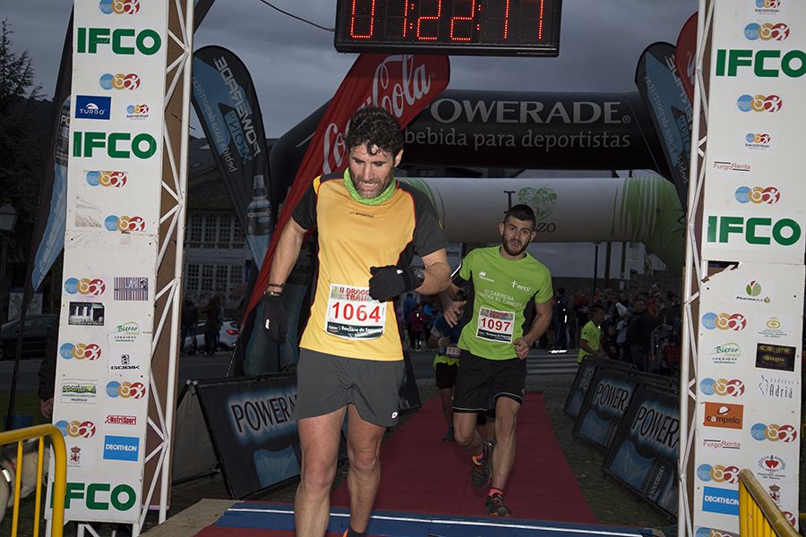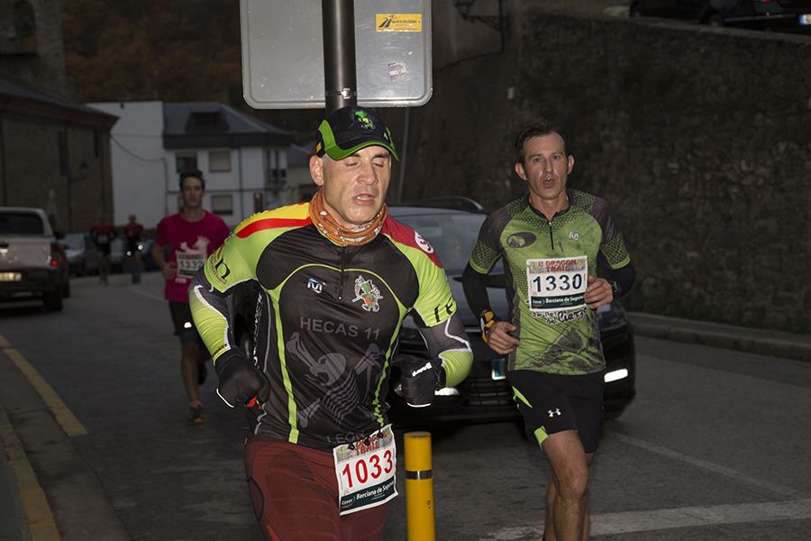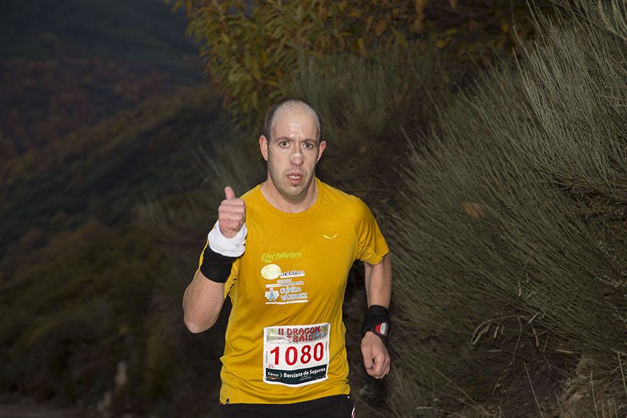 El recorrido partió del Castillo de Corullón pasadas las 16.00 horas y acabó en la fortaleza de Villafranca del Bierzo pasando por las inmediaciones de Dragonte. Esta prueba, de 15,4 kilómetros, organizada por el ultrafondista villafranquino Miguel Martínez Basurco, pretende instalarse en el calendario y convertirse en un referente en las carreras de este tipo. La trail tenía fijado un tiempo de corte de 1 horas y 9 minutos para sus participantes.