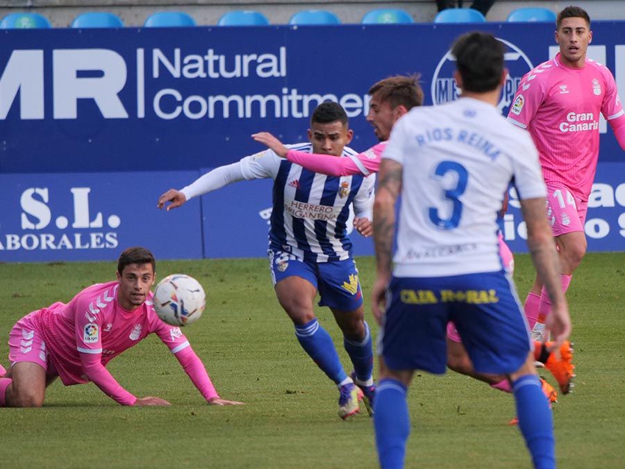 D. Las Palmas, 0:Álex Domínguez; Álvaro Lemos, Suárez, Athuman, Dani Castellano; Loiodice, Fabio (Aridai, min 89), Clemente (Mendes, min 71), Rivera; Iemmello (Benito, min 89) (Róber, min 71) y Espiau.-Entrenador: Pepe Mel.