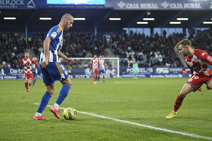 El conjunto lucense se vio sometido totalmente durante los primeros cuarenta y cinco minutos y solo tuvo algún acercamiento aislado. Trató de dominar durante un tramo corto del primer tiempo, pero fue una ilusión que se desvaneció con el tanto de Naranjo que hizo justicia de una primera parte de claro tono blanquiazul. Plácido partido se planteaba para los de David Gallego con la escasa ambición de los ‘vecinos’ gallegos.