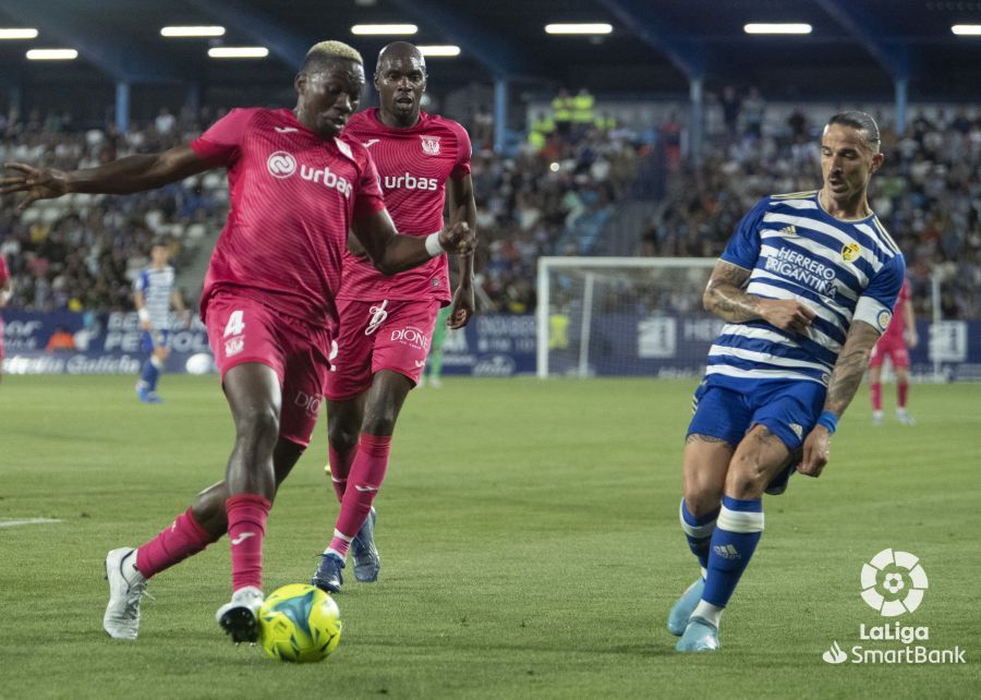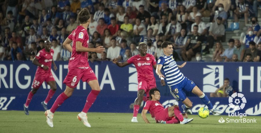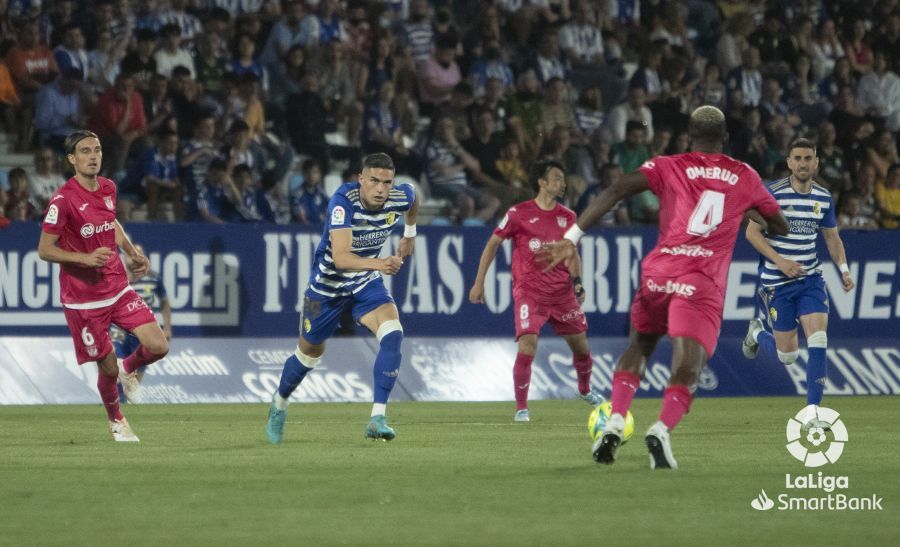 Buscó pronto el empate el equipo berciano, que estuvo cerca del 1-1 en una falta ejecutada por Ríos Reina. El sevillano fue el que más lo intentó por el costado zurdo, aunque las ocasiones más claras para el 1-2 llegaron por el derecho, primero en una galopada de Adot que acabó salvando Omeruo cuando iba a rematar Naranjo a puerta vacía y después con un centro de Ojeda que Enrich remató alto. Pudo haber un penalti por mano de Shibasaki, pero el colegiado rectificó a instancias del VAR y el 0-2 fue el resultado al descanso después de que Naranjo perdonara con la cabeza un centro de Ojeda cerca del mismo.