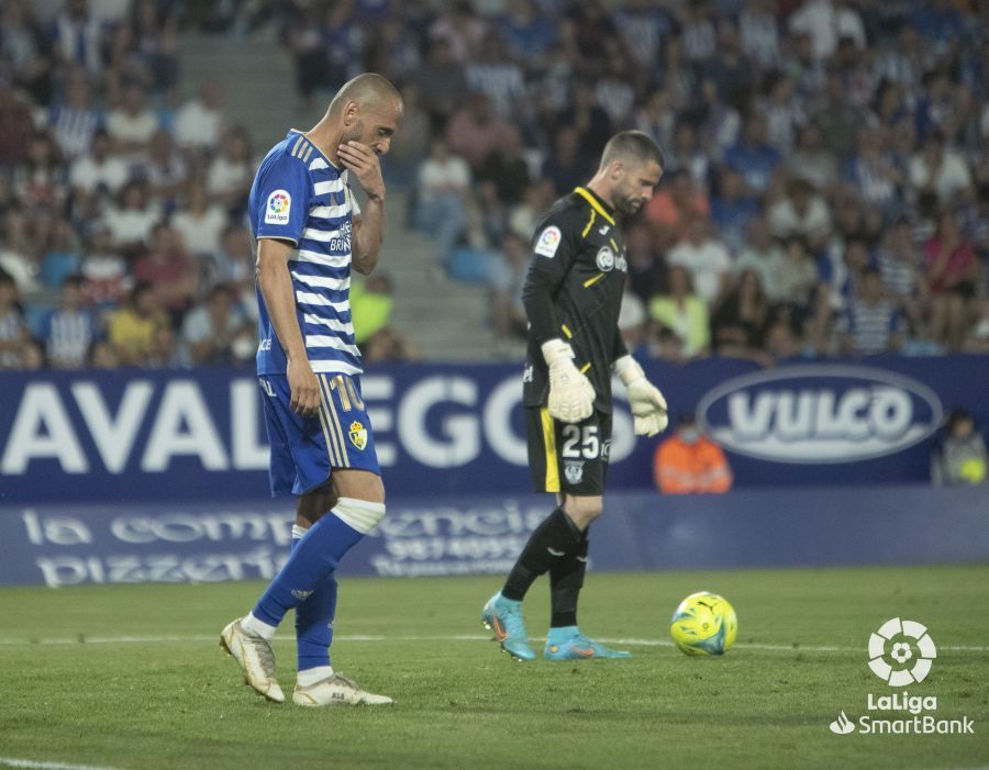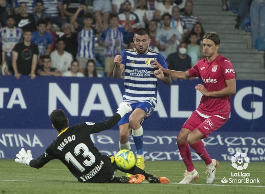 Se reanudó el juego en El Toralín y buscó recortar distancias la escuadra blanquiazul con un disparo de Ojeda. Un golpeo lejano de Ríos rozó la escuadra en los primeros minutos de este segundo periodo. Una jugada con varios rebotes en el área acabó con un remate de Medina que salvó Riesgo. Una internada de Naranjo acabó con un remate desviado del extremo. Yuri lo intentó también en una acción personal que acabó en las manos de Riesgo, que salvó con la cara una clara ocasión de Naranjo a bocajarro y tuvo que retirarse en camilla. La tuvo Yuri a pase de Ríos, pero remató fuera.