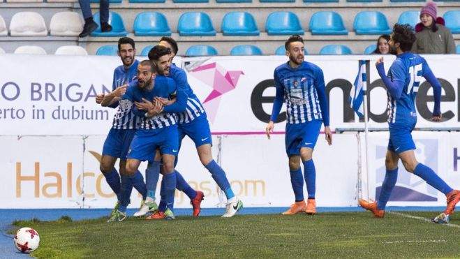 S. D. Ponferradina, 2: Mandaluniz, Jon García, Álvaro Moreno, Fernando Román, Saúl, Menudo, Isi (Donoso, min 56), Cidoncha (Iago Díaz, min 56), Yelko Pino (Jorge, min 66), Yuri y Ríos Reina.