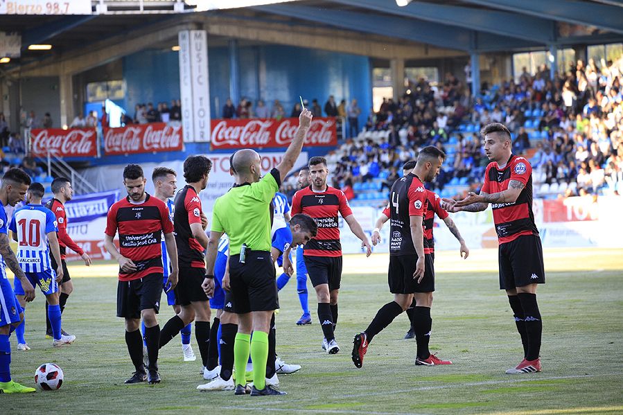 La mejor ocasión visitante en el segundo asalto llegó con un disparo de Monroy que estuvo a punto de sorprender a Manu García. Por suerte, se estrelló en el travesaño para alivio de la parroquia berciana. Una llegada de Rafa Mella acabó con un zapatazo al palo corto que obligó al arquero local a realizar una excepcional intervención para evitar que los visitantes recortaran diferencias.