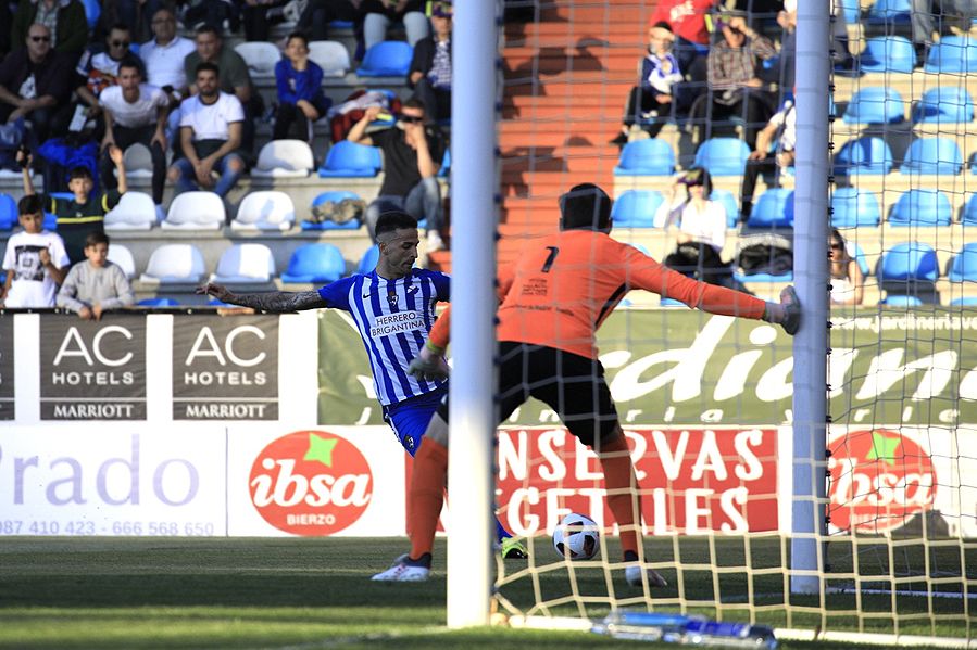 El primer “uy” en la grada llegó con un pase filtrado de Jorge García al que no llegó Bravo. El propio 10 pudo adelantar al conjunto berciano, pero su remate, después de recoger el balón en el borde del área grande, fue despejado por Miguel Ángel. El esférico le quedó a Dani Pichín, que marcó a placer, sin oposición, para estrenar su cuenta goleadora. Decimos estrenar porque poco después, antes del cuarto del cuarto de hora, volvió a ser el más listo de la clase para aprovechar otro rechace con el que puso el 2-0 con el que se alcanzó el descanso. El 7 selló su doblete después de que el guardameta visitante no pudiera atajar una falta lanzada por Ríos Reina con mucho peligro.