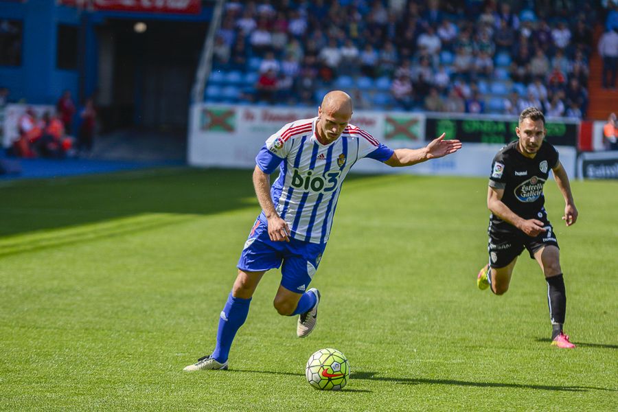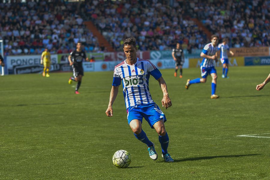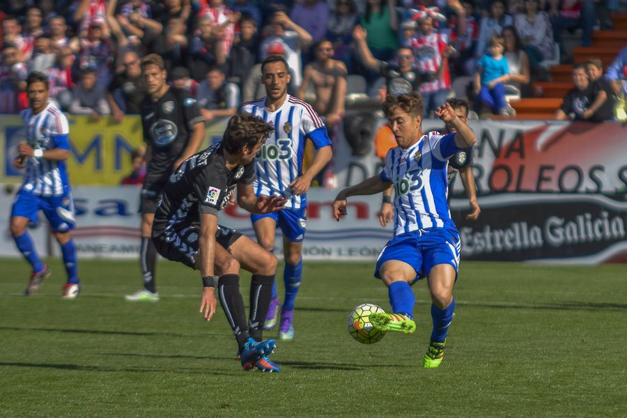 El centrocampista Acorán Barrera en un momento del partido.La Ponferradina volvió a conseguir una victoria. Lo hizo después de derrotar al Lugo por 2-1. Los blanquiazules realizaron un encuentro muy completo que le permite salir de la zona de descenso. La Deportiva acumula ya 43 puntos.