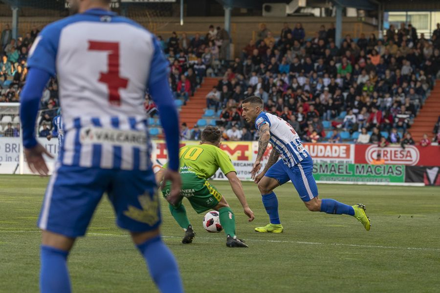 Tuvo varias opciones de marcar el conjunto salmantino para marcar en el primer tiempo, pero los disparos de Unai y Garrido apenas inquietaron a Manu García. Por parte de los blanquiazules sería Pichín el que llevó más peligro en este primer tramo del encuentro, aunque sería Bravo el que puso el 1-0 con que se llegó al descanso. Una asistencia de Isi fue aprovechada por el 10 para abrir el marcador pese a la estirada del arquero visitante.