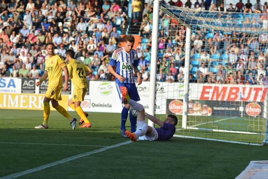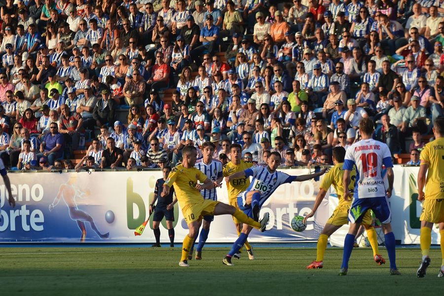 EL REMATE AL LARGUERO DE ANDY EN EL MINUTO 4 QUE PUDO CAMBIAR EL PARTIDO (V. ALÓN)El club berciano cierra la etapa más dorada de su historia después de 4 campañas en la división de plata. Toca volver al fútbol de 'barro' a bregar como quizás hubiera tocado esta jornada. Los blanquiazules dormitaron en la primera parte y en la segunda jugaron con más corazón que cabeza. Se jugada la salvación y fue incapaz de anotar un gol que sí recibió en el 86'. Un remate al larguero de Andy en el minuto 4 pudo cambiar la historia.