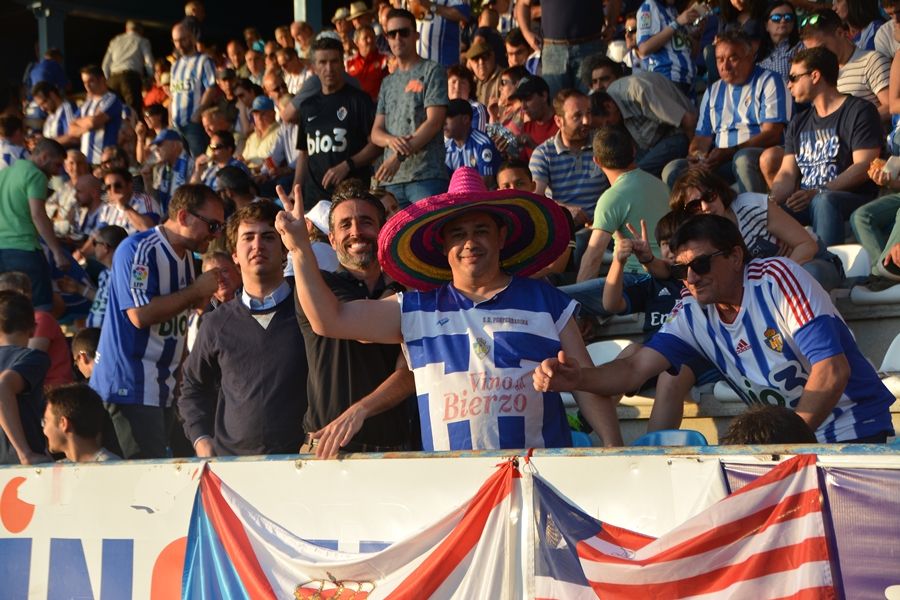 No lo hizo la grada del Toralín, que empujó desde el minuto uno con pancartas que rezaban "Ponferrada nunca se rinde", y con cánticos de "sí se puede". Al final parte de la afición terminó con una sensación de que el equipo no estuvo a su altura; a la de una afición que sí estará el año que viene (muchos de estos jugadores no), para bregar en esos campos de arena y tierra. El objetivo ahora es VOLVER.