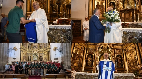 En el acto, se ha ofrecido un pequeño discurso y se han entregado un ramo de flores, de manos del presidente, José Fernández Nieto, y una camiseta por parte de Borja Valle y en nombre del equipo. Una vez concluido el acto, como también es costumbre cada año, la comitiva del club se ha trasladado caminando hasta el Convento de la Purísima Concepción, en la Calle del Reloj de Ponferrada, donde los integrantes de la expedición han saludado las monjas de clausura y han recibido su cariño.