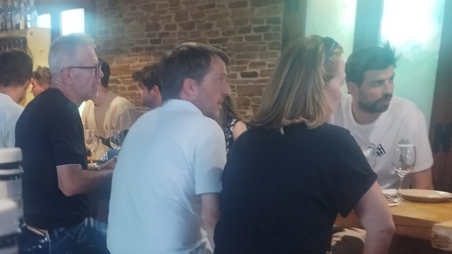 Al empresario, con una trayectoria deportiva sobresaliente en la que destacan el Mundial de fútbol de 2010, la Eurocopa de 2012 y las Ligas y las Copas de Europa en Inglaterra y España con el Mánchester United y el equipo catalán, compartió mesa con un grupo de aficionados de su equipo en las horas previas al trascendental encuentro que disputará el conjunto que preside en Municipal El Toralín.