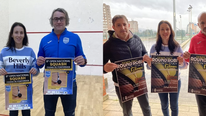 Sobre el Open Nacional de Squash, también se celebrará este sábado en las pistas de squash de las piscinas climatizadas del Toralín. Se trata de la octava edición del evento y su organización corre a cargo del Club Deportivo Squash Ponferrada que pone en marcha una competición en la que participan jugadores de comunidades como Asturias, Navarra o la Comunidad Valenciana.