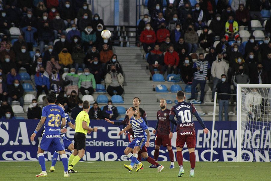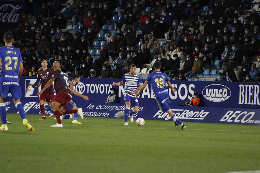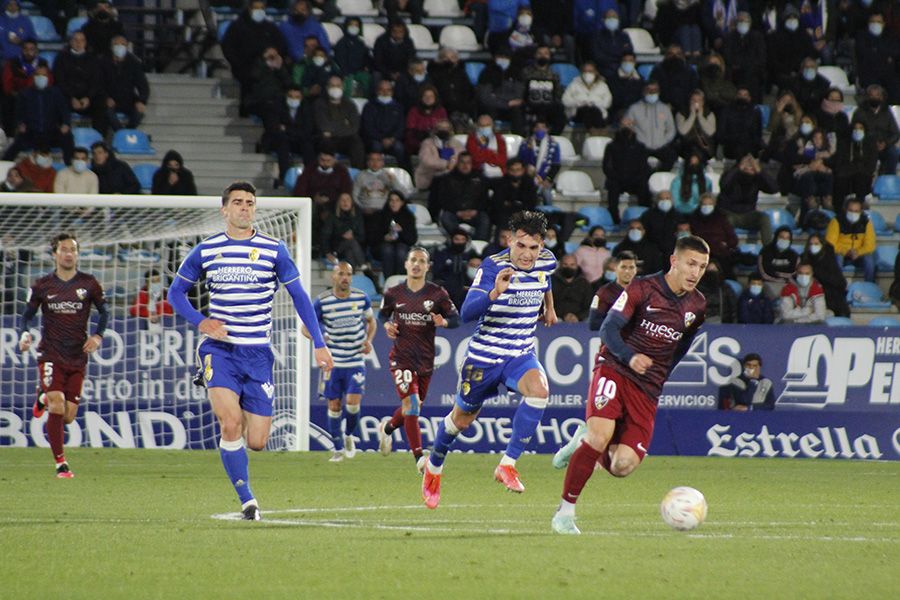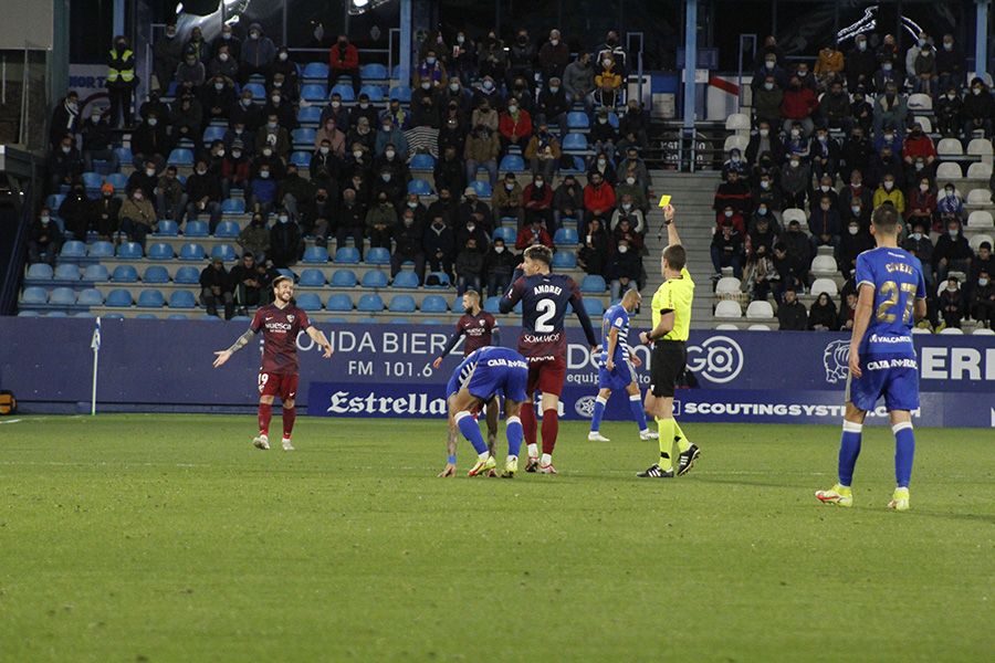 Siguió poniendo en dificultades tras el descanso el cuadro aragonés, que planteó un encuentro muy trabado desde el comienzo. Si al principio supo estirarse y buscar las debilidades del cuadro berciano, con la expulsión de Mateu mediado el segundo tiempo se fue replegando más y más con la intención de conservar el resultado. Amenazó Yuri, pero su remate, que acabó en la red del marco visitante, fue invalidado por clara posición ilegal del atacante brasileño.