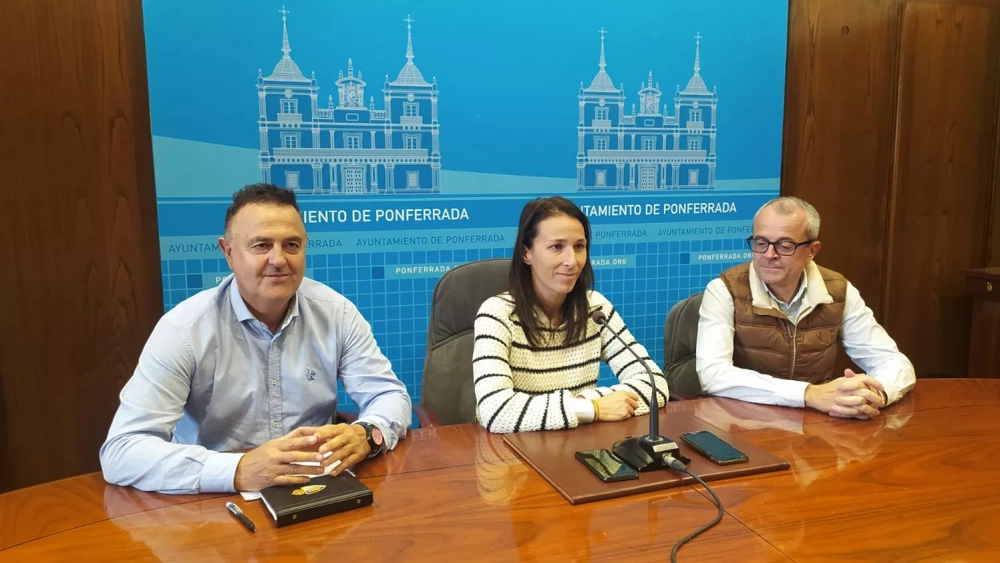 La concejala de Deportes del Ayuntamiento de Ponferrada, Eva González, el edil de Hacienda, Luis Antonio Moreno, y el presidente del Club Deportivo Ponferrada, Ángel Molinero han anunciado este lunes la firma de un nuevo convenio entre instituciones para destinar una partida presupuestaria en 2025 al equipo berciano.