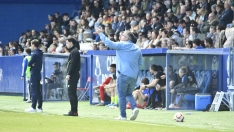La primera ocasión local en el segundo tiempo llegó con un centro desde la derecha que remató de chilena y desviado por poco Bustos. También lo intentaron de cabeza Borja Valle y Germán Nóvoa en dos saques de esquina. Otro remate de Yeray de volea a centro de Doué estuvo a punto de devolver la ventaja a los blanquiazules. Más clara fue la de Álex Costa, que cayó en el área tras recibir de Mula.