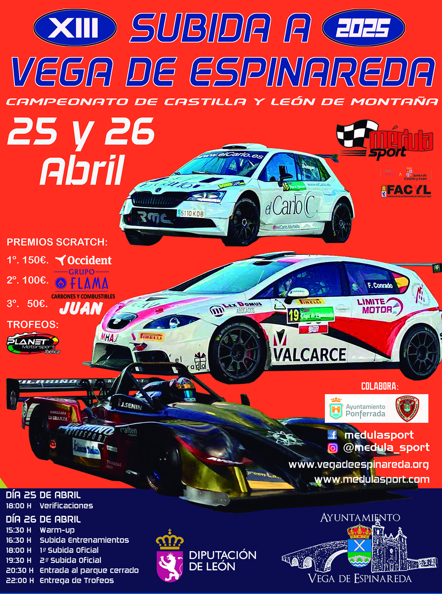 El asfalto berciano calienta motores para la tradicional Subida a Vega de Espinareda, que se disputará este fin de semana en lo que será su XIII edición, enmarcada dentro del Campeonato de Castilla y León de Montaña. Los próximos días 25 y 26 de abril la localidad berciana de Vega de Espinareda volverá a ser epicentro del motor con una prueba que según sus organizadores "ha ganado peso desde la pandemia".