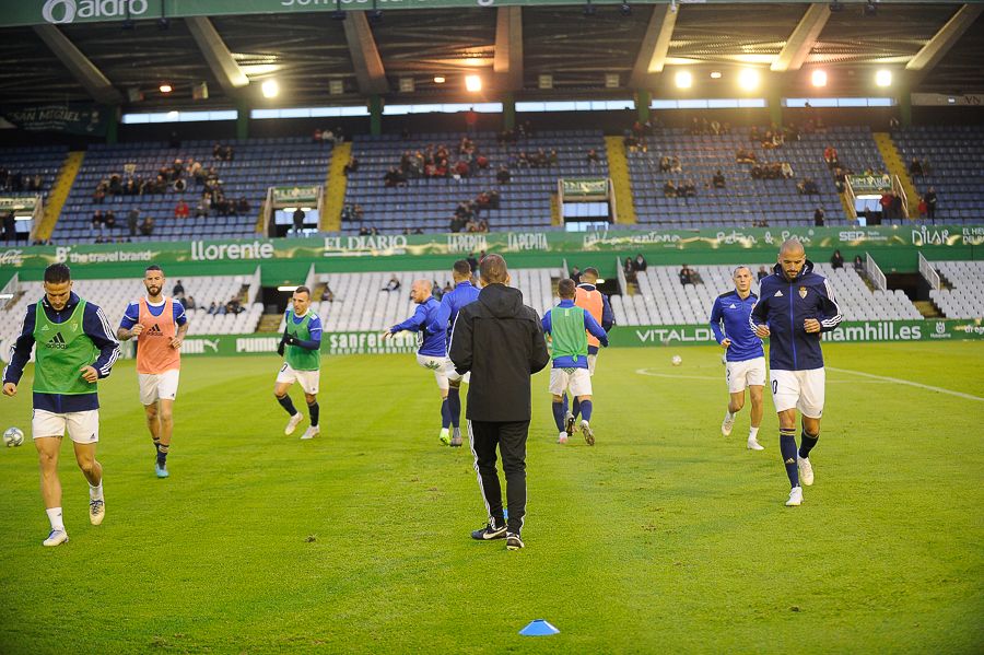 Las mejores oportunidades en los primeros minutos, no obstante, fueron para los de Iván Ania. Yoda desaprovechó una ocasión después de recoger un rechace tras una llegada protagonizada por Lombardo por la derecha. Pudo llegar el 1-0 tras un pase del propio Lombardo a la espalda de la zaga blanquiazul, en una ocasión de David Rodríguez en la que el colegiado decretó erróneamente fuera de juego y que el VAR habría validado. Un disparo peligroso en la frontal de Buñuel no evitó el 0-0 con el que acabaron los primeros cuarenta y cinco minutos.
