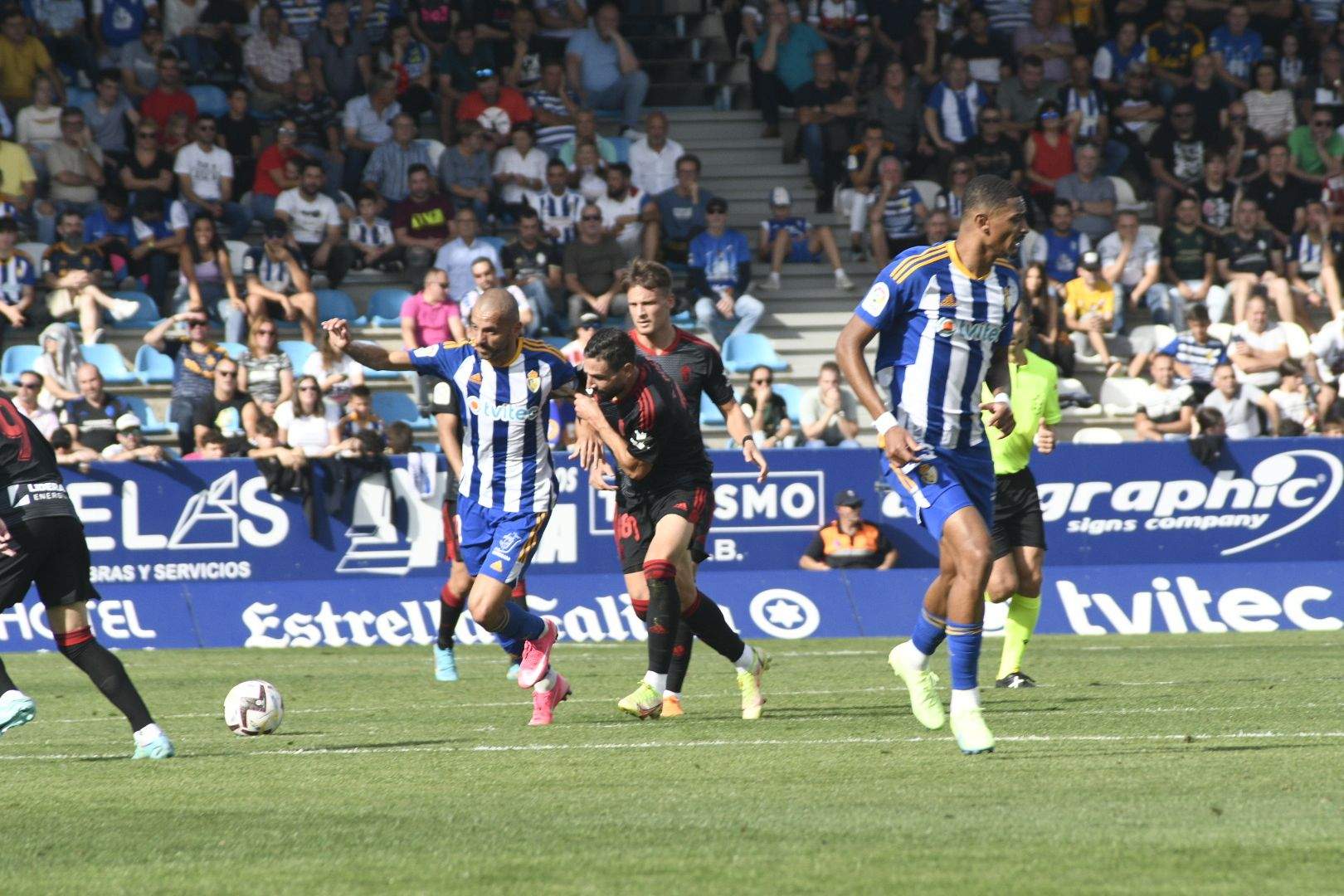 La formación berciana fue creciendo poco a poco y Yuri y Pascanu acariciaron el gol en dos acciones de estrategia a la salida de sendos saques de esquina. Sin embargo, faltó algo de ambición y acierto y estuvo a punto pagarlo caro el cuadro local, al que le salvó que Miguel hiciera mano en un balón colgado tras un fallo en la salida de Amir, que salvó, eso sí, un remate en boca de gol tras un fuera de juego y mantuvo el 0-0 final.