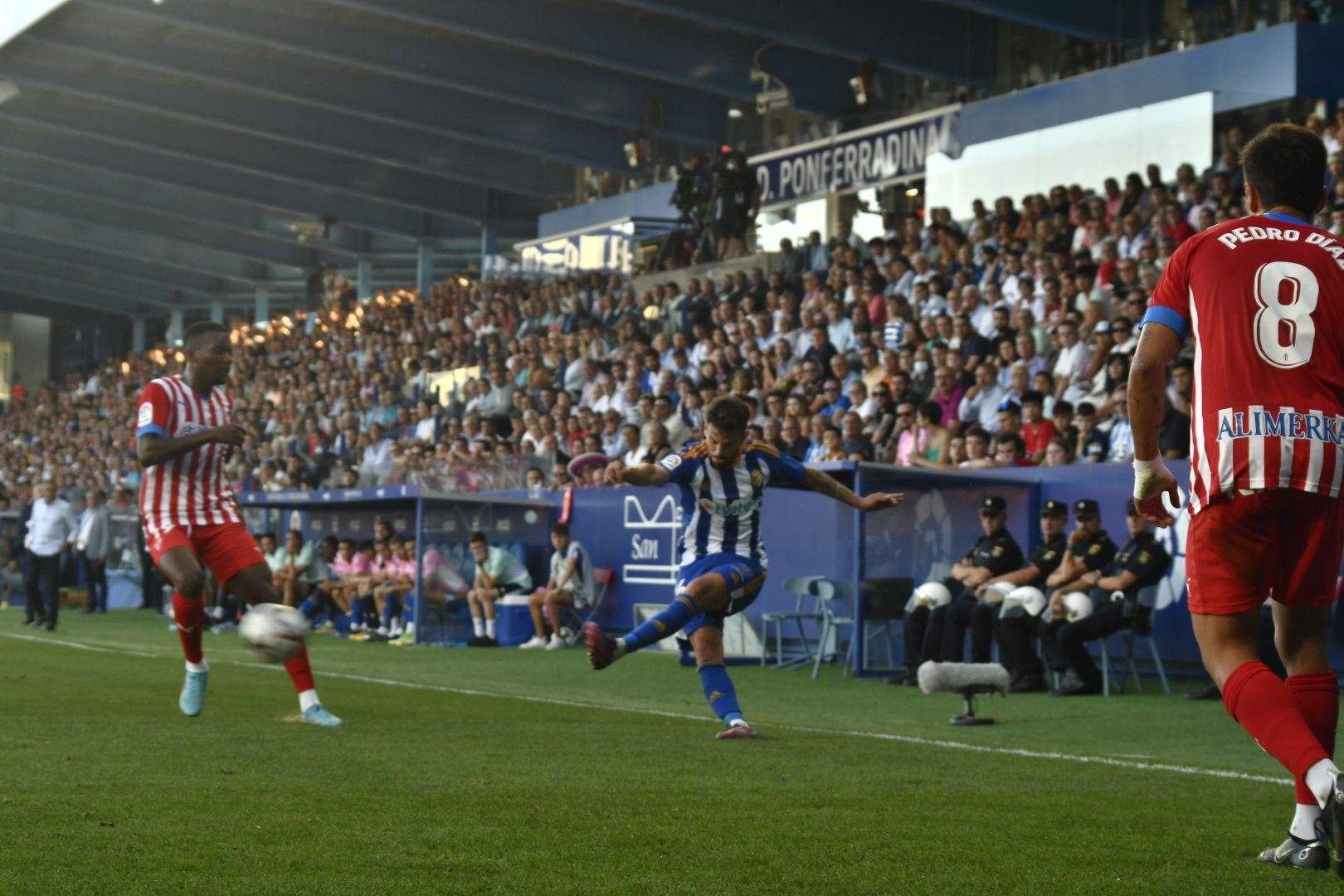 La Deportiva mantenía su propuesta y tenía el balón, pero era incapaz de amenazar a Mariño. Incluso Djuka esta vez sí batió a Amir, pero lo hizo en posición de fuera de juego y el tanto no subió al marcador. El partido se volvió loco en los últimos minutos del primer acto, con mucho juego de ida y vuelta, pero los de José Gomes no fueron capaces de atacar ni llegar con fluidez a las inmediaciones de Mariño. Estuvo incluso más cerca el 0-3, pero consiguió el cuadro berciano aguantar para llegar con opciones a la segunda parte.