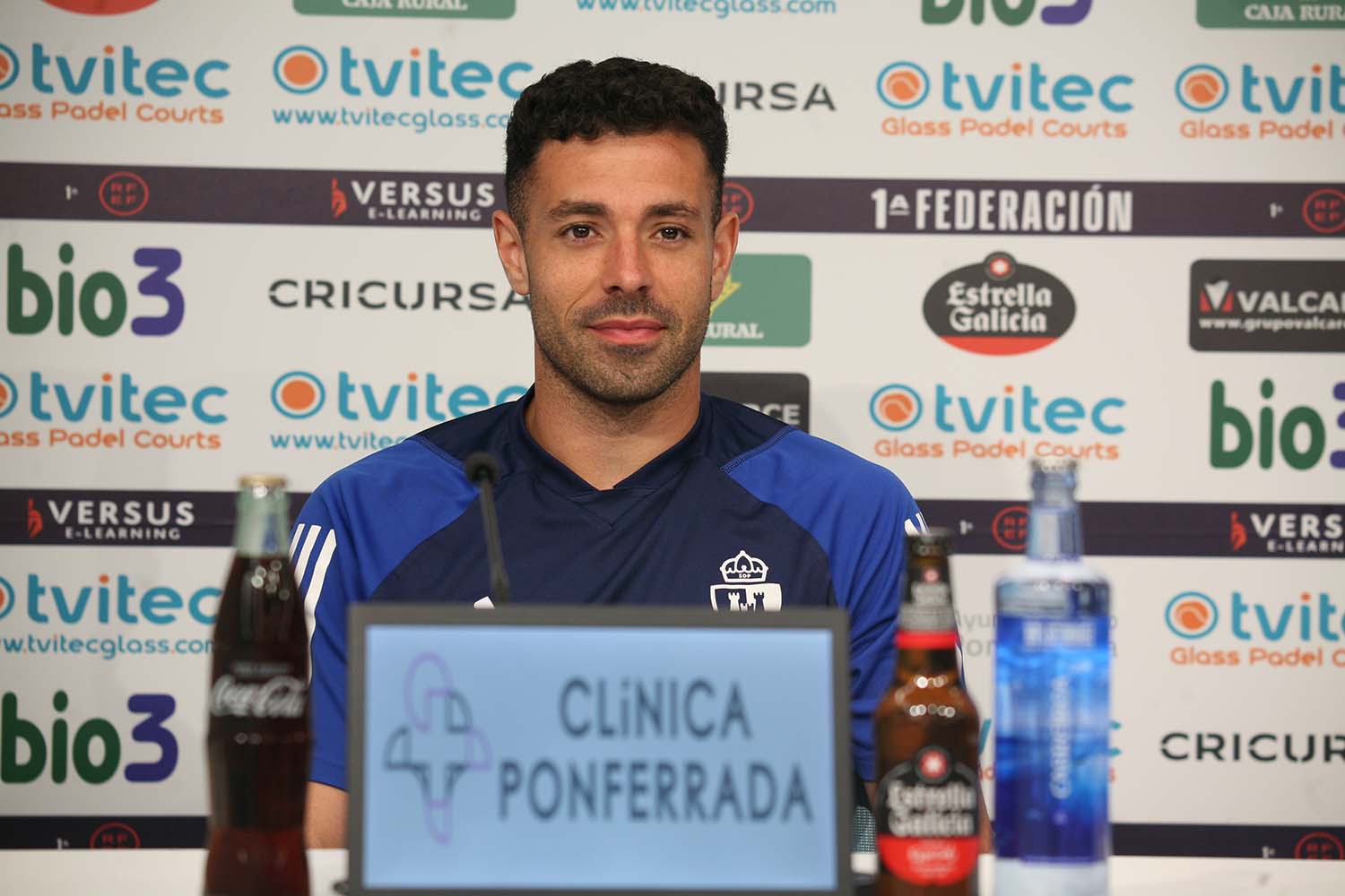 El jugador de la Deportiva Ponferradina Álvaro Bustos pasó por sala de prensa para analizar la actualidad del conjunto berciano antes de visitar al Tarazona y tras la victoria contra el Osasuna Promesas, un partido en el que tuvo que jugar en el centro del campo. Al respecto, recordó que «esta temporada no había participado ahí. He entrenado ahí», aclaró el extremo asturiano, que aseguró que «durante el partido fue fácil» la adaptación. «Cuando juego en el centro trato de ser posicional, tener el balón», explicó.