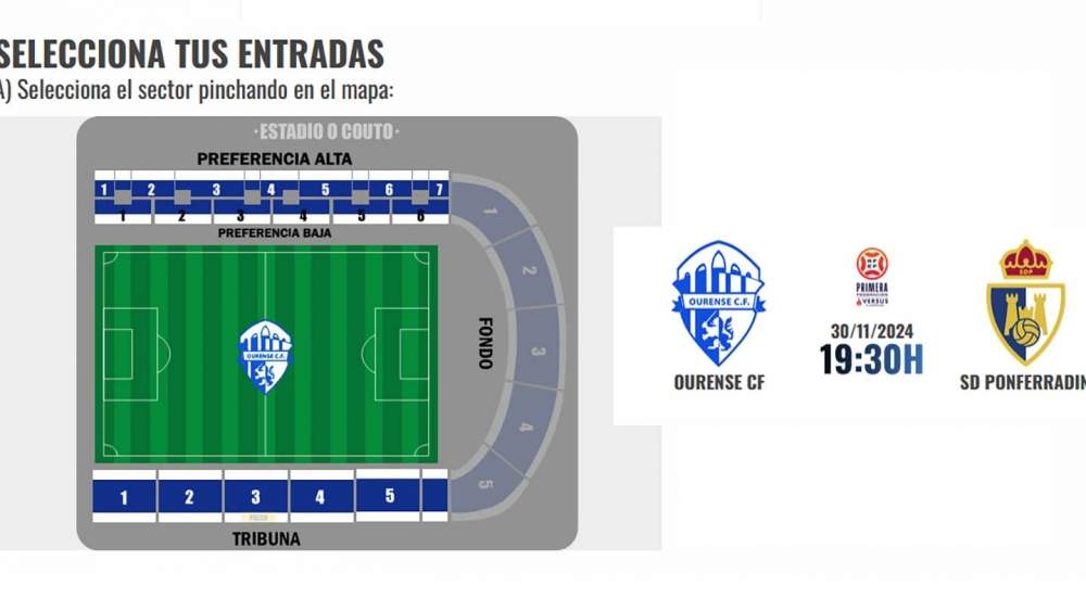 El Ourense, próximo rival de la Deportiva Ponferradina, ofrece servicio online de venta de entradas para el encuentro que se disputará desde las 19:30 horas del próximo sábado en el estadio de O Couto, en la capital ourensana. Los aficionados que quieran asistir al mismo podrán adquirir sus pases a través de la siguiente web: https://ourensecf.compralaentrada.com/eventos/.