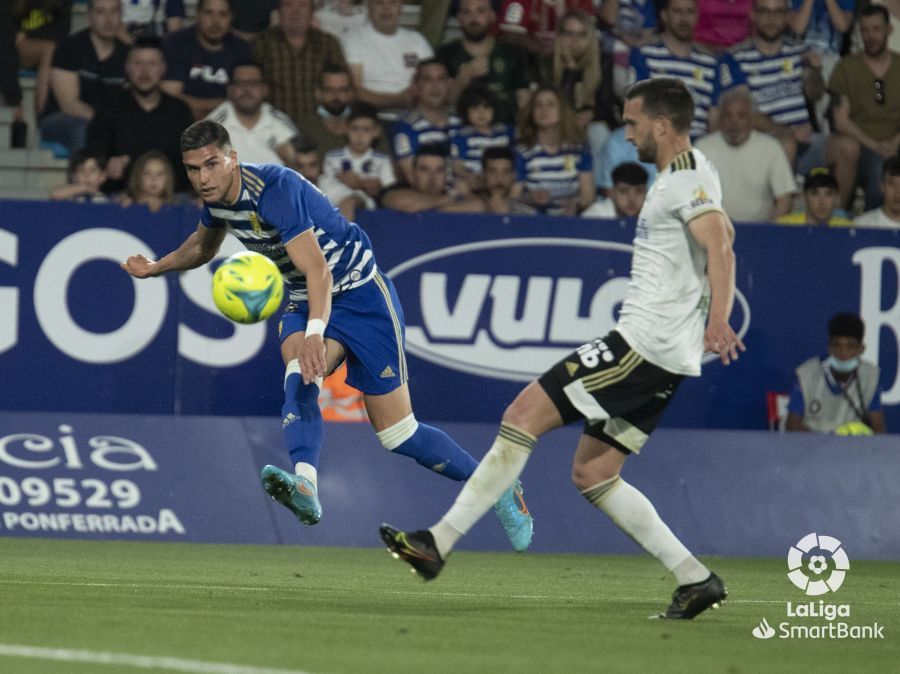 También a balón parado, aunque como casi único recurso, pudo llegar el empate gracias a un ‘regalo’ de Amir en una mala salida que estuvo a punto de aprovechar Grego rematando en una posición muy forzada. Pidió pena máxima en esa acción el defensa del conjunto burgalés, que cayó en el área al intentar rematar después de ser empujado por un inocente y despistado Copete. No generó más peligro el equipo dirigido por Julián Calero, que tuvo al exjugador de la Deportiva Pablo Valcarce como principal amenaza. El 2-0, un resultado muy cómodo para la escuadra berciana, fue el resultado al final de los primeros cuarenta y cinco minutos.