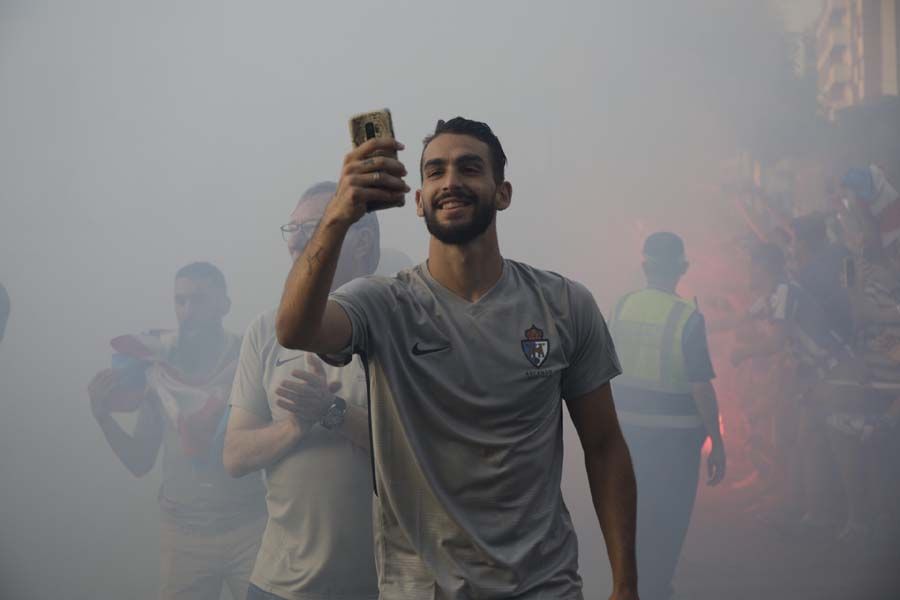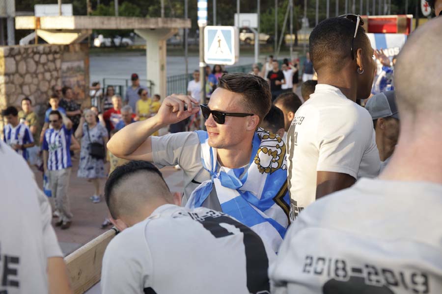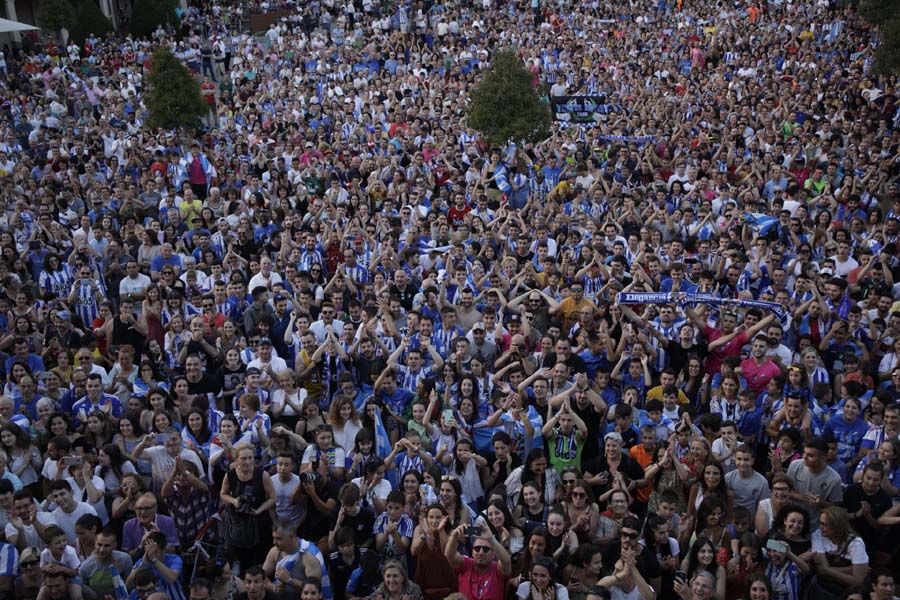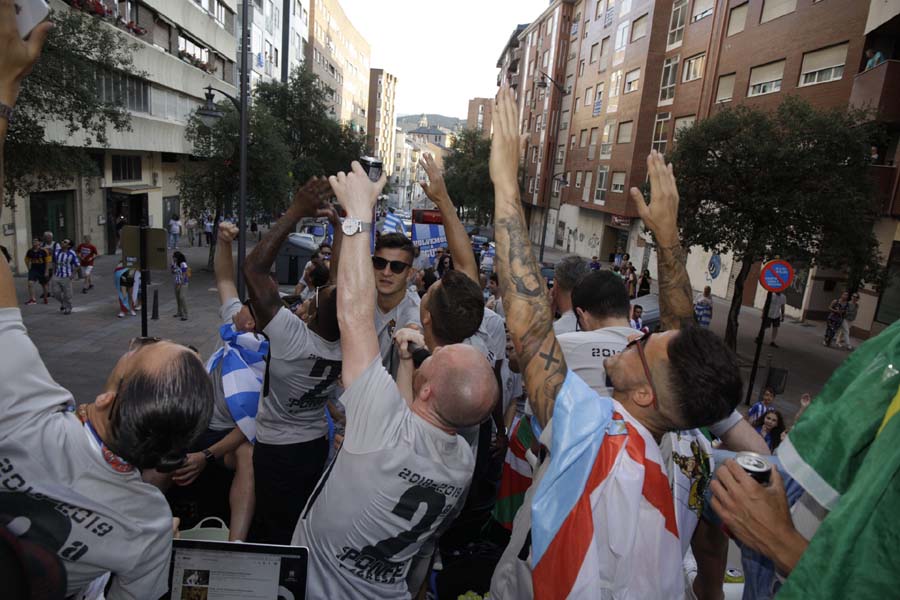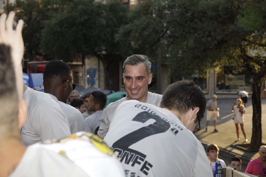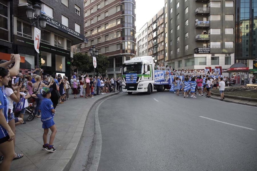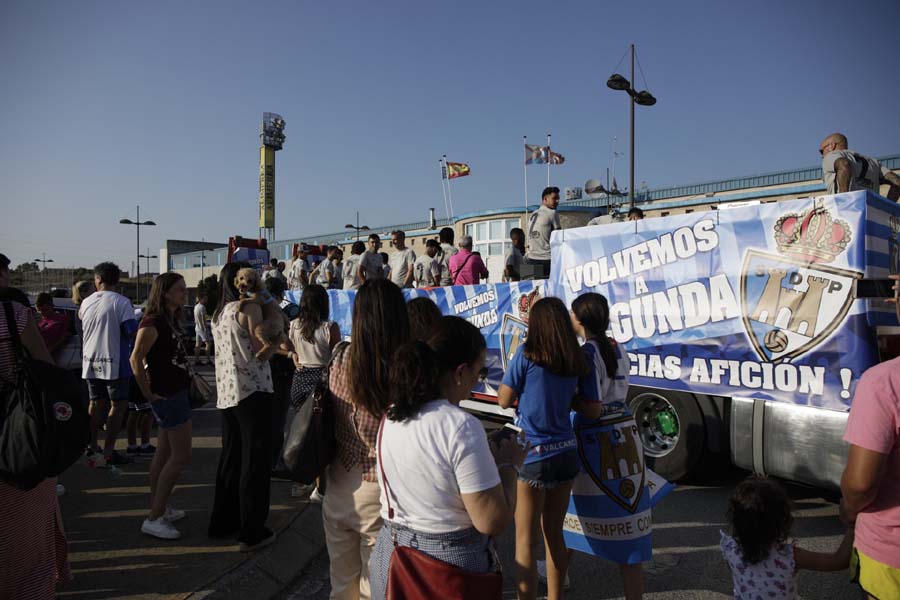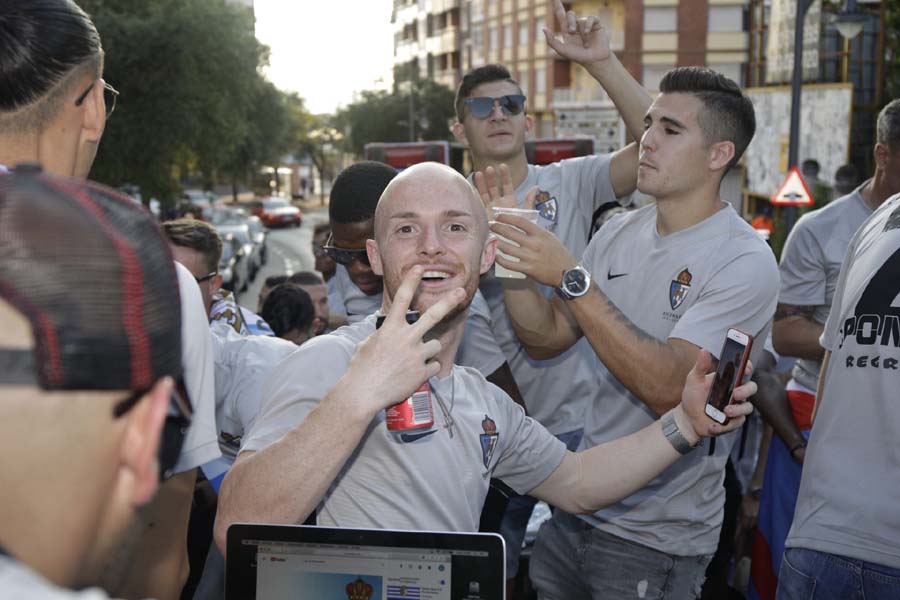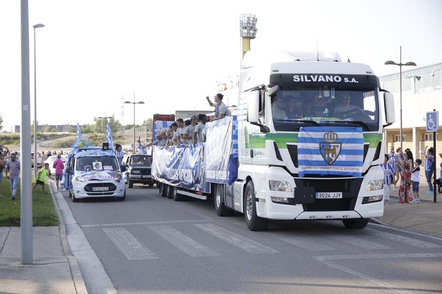 La Ponferradina salió del estadio El Toralín a las 19.30 horas dirigiéndose a la plaza del Ayuntamiento, donde los componentes del equipo realizarán una fiesta en el balcón, pasando antes por la plaza Lazúrtegui.