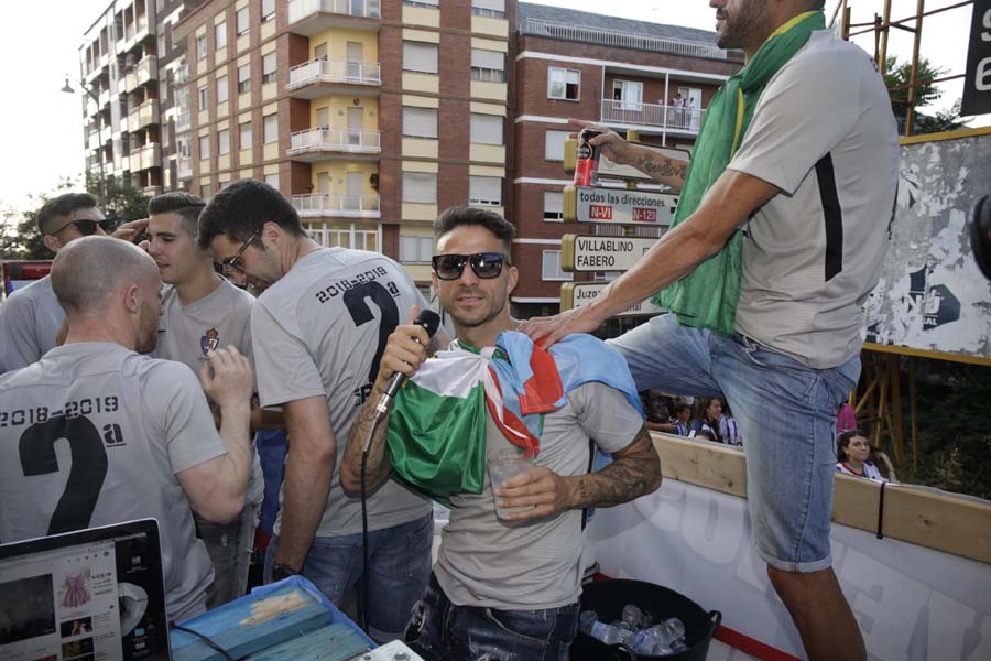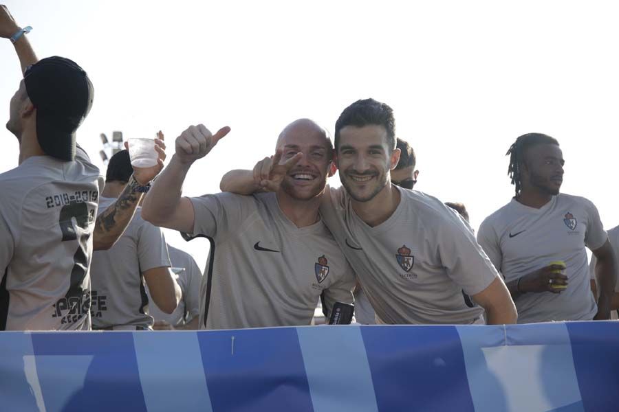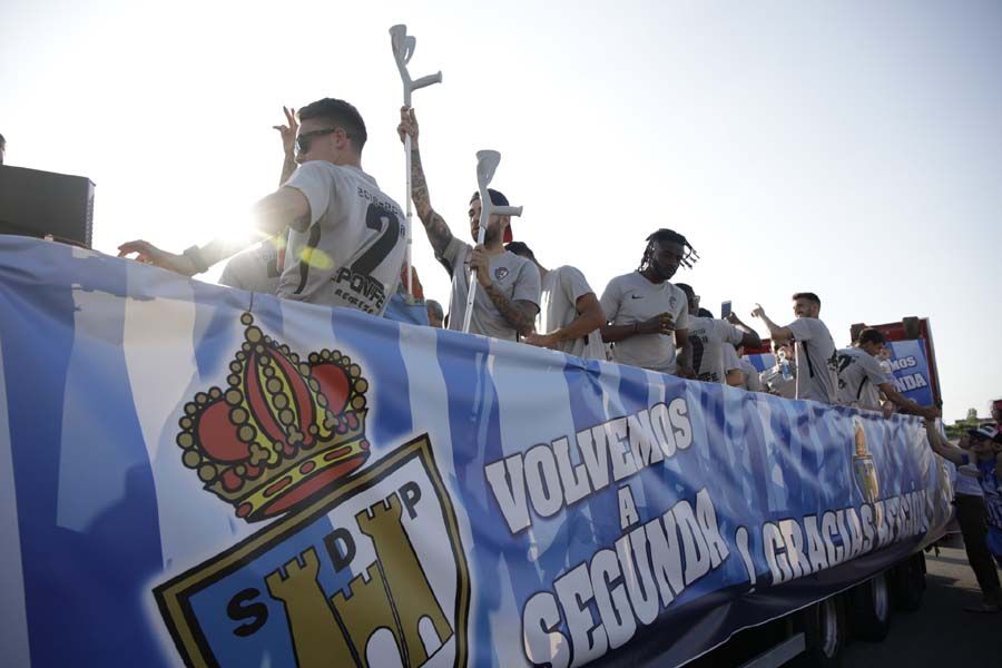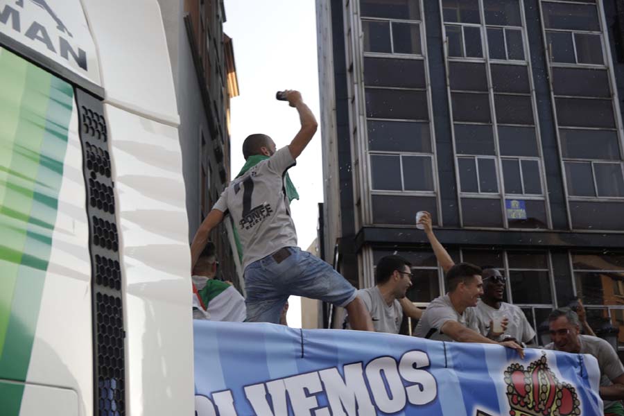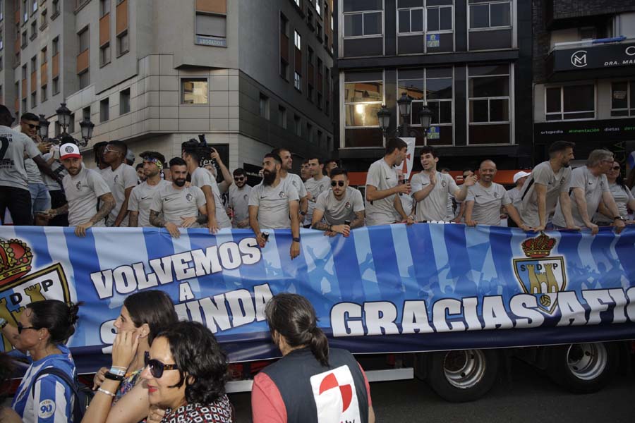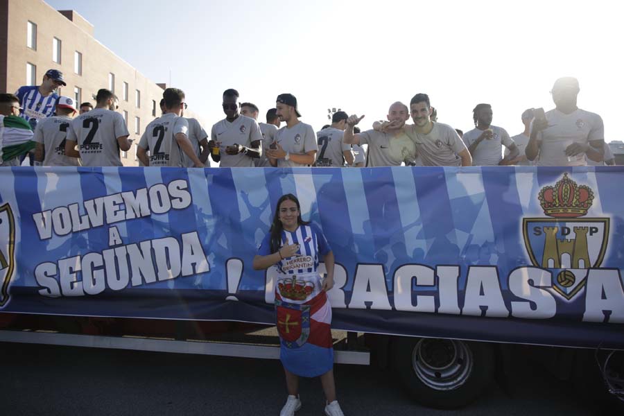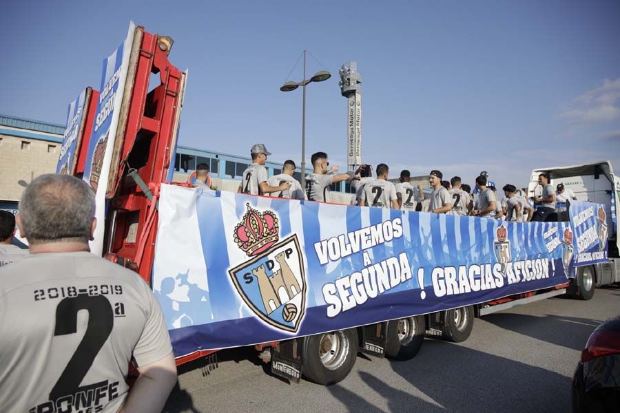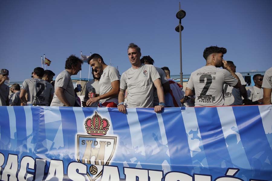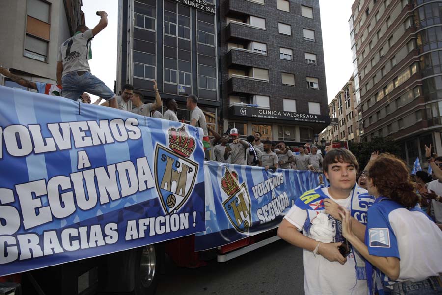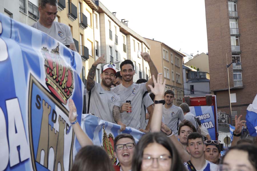 Tras la victoria de la S.D Ponferradina este sábado y el consiguiente ascenso a Segunda División del equipo de la capital berciana, los jugadores recorren este domingo las calles de la ciudad.