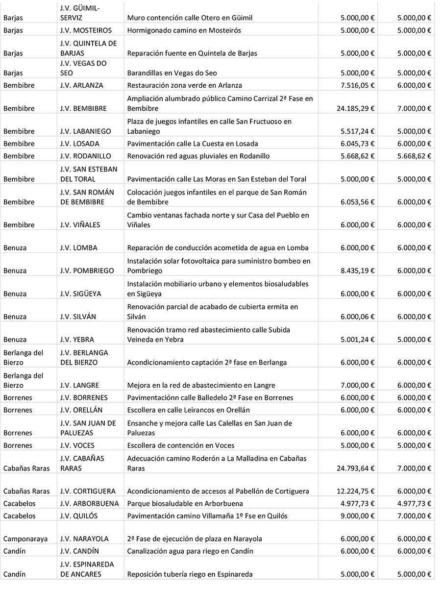 El Consejo del Bierzo reparte más de un millón de euros entre 190 juntas vecinales de la Comarca