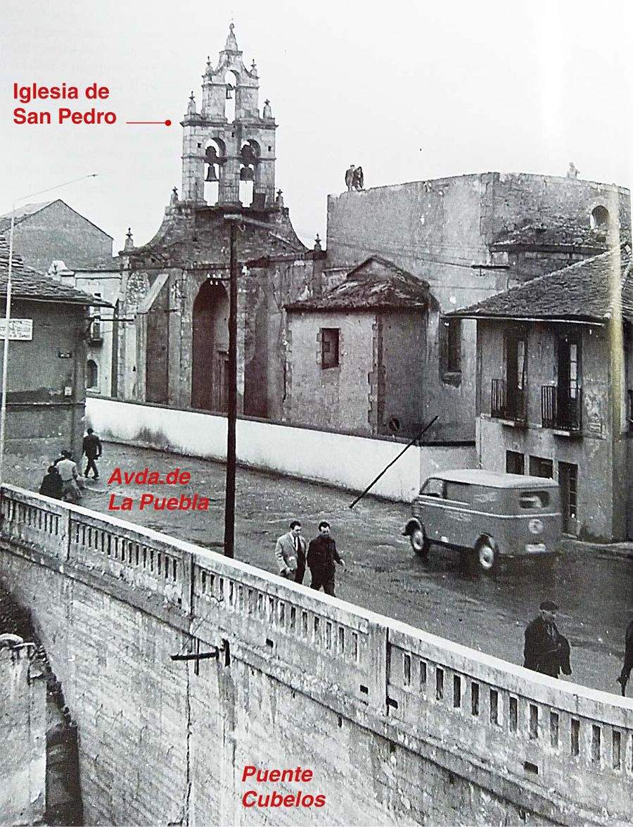 En junio de 1963 comenzaba la demolición de la antigua San Pedro, aunque ya unos años antes, desde 1957, compartía ‘escenario’ en Ponferrada con la nueva, como dan de las presentes imágenes de 1958, año en el que se ensancha el puente de ‘Cubelos’ y se determina el fin de la historia de este que fuera todo un reclamo en el centro de la capital berciana.