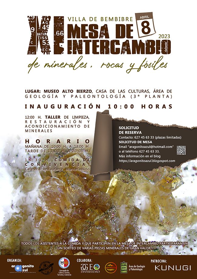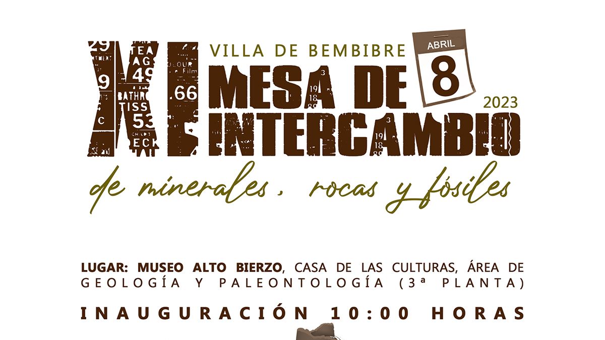 Con motivo de la celebración de la XI Mesa de intercambio de minerales rocas y fósiles “Villa de Bembibre” informamos de los actos a celebrar durante la jornada del día 8 de abril de 2023.