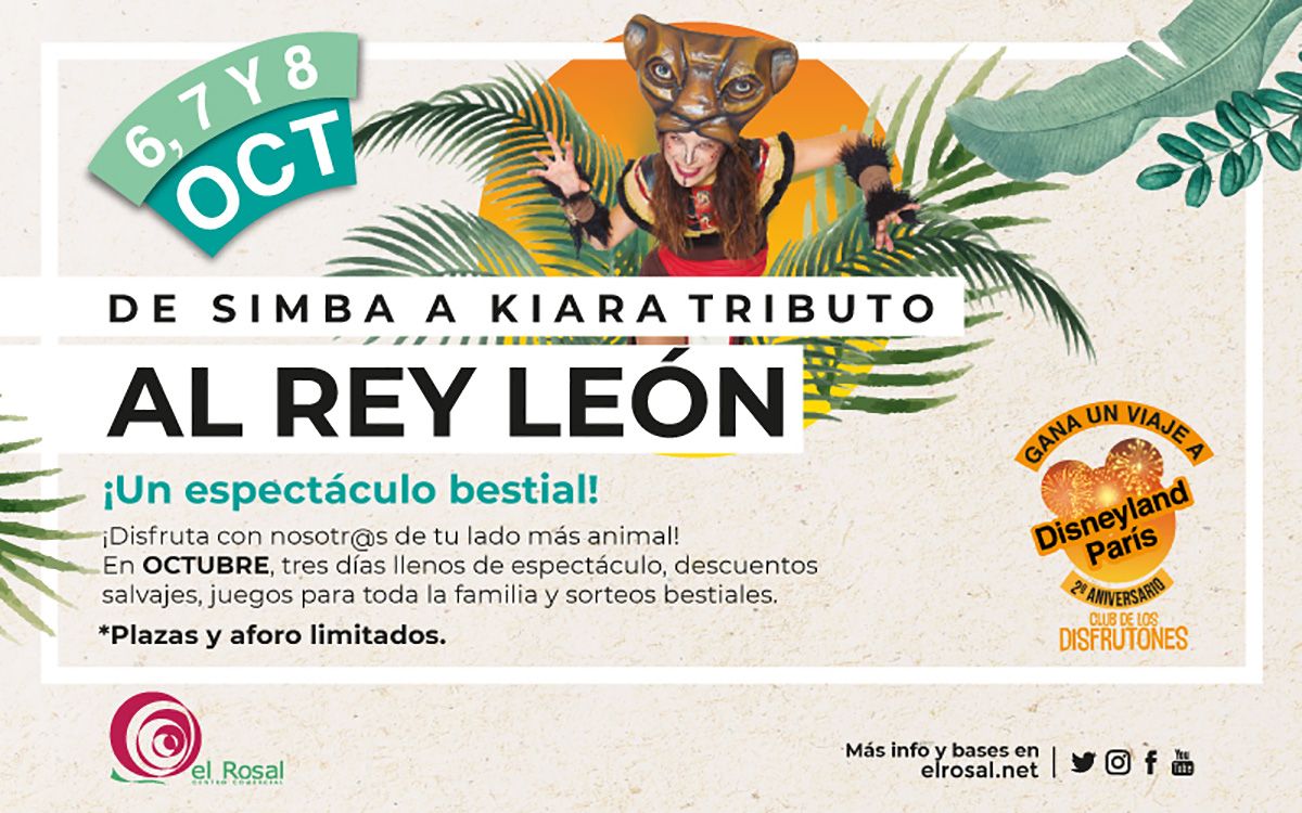 Esta original propuesta consiste en el musical “De Simba a Kiara. Tributo al musical El Rey León”. Un show de 90 minutos de duración que todas las familias podrán disfrutar de manera totalmente gratuita en la Planta Calle del centro comercial el día 8 de octubre en dos pases horarios: a las 18.00h y a las 19:45h. La asistencia estará abierta a todos los públicos y los miembros del Club de los Disfrutones entrarán en el sorteo directo de un viaje familiar a Disneyland París valorado en 2.000€.