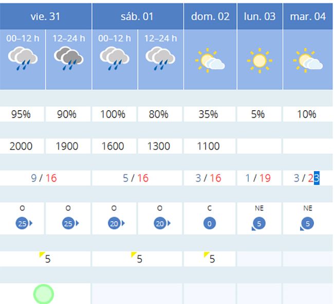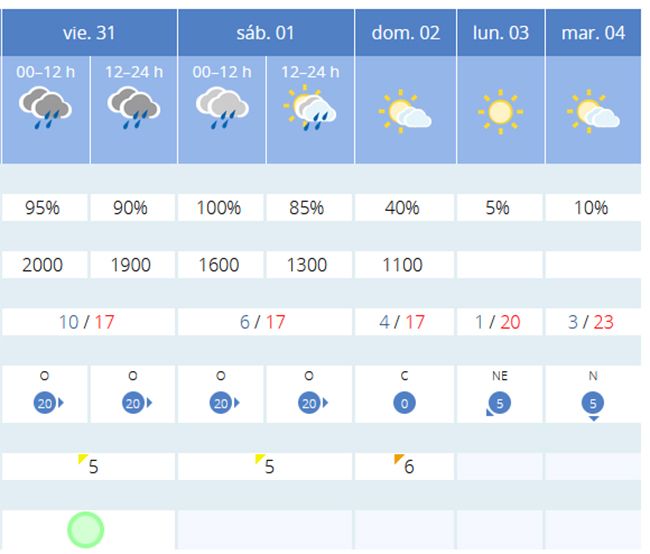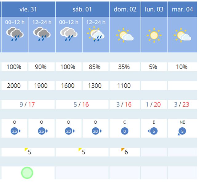 La Semana Santa, abarcará el periodo desde el domingo 2 de abril (Domingo de Ramos) hasta el domingo 9 de abril (Domingo de Resurrección), y aunque aún queda tiempo, las previsiones auguran calor y sol la mayoría de días. Sin embargo, los antes de la fecha 'oficial' de comienzo de las festividades, se prevé que llueva tanto el viernes de Dolores y el sábado de Pasión se vean condicionados por la meteorología.
