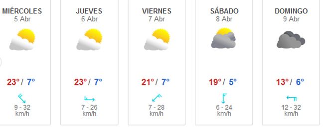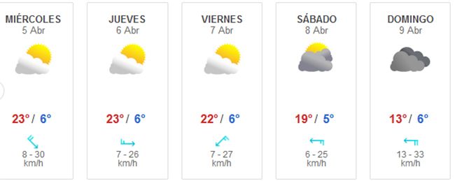 Las temperaturas irán en aumento a medida que avance la Semana Santa, con máximas que llegarán a los 23 grados el Martes y Miércoles Santo. Sin embargo, la situación comienza a cambiar a partir del sábado y de cara al Domingo de Resurrección. En ambos caso se prevé lluvia, aunque en chubascos intermitentes.