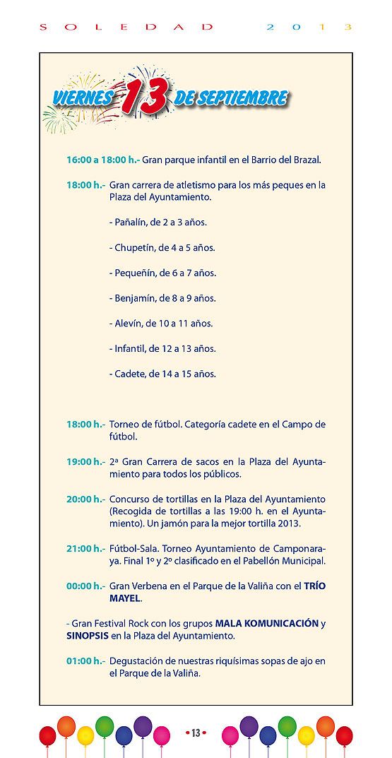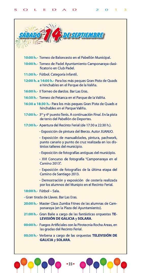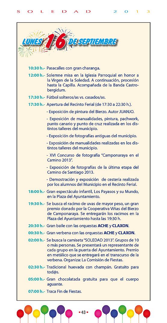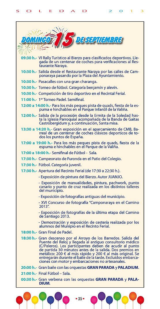 IFBZ: ¿Cuáles son los actos centrales y más atractivos de las Fiestas de La Soledad 2013 en Camponaraya?