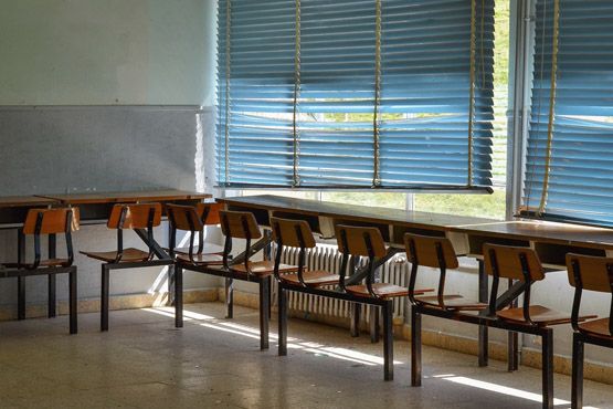Vista del patio interior y lugar de recreo de los alumnos (Víctor Alón).