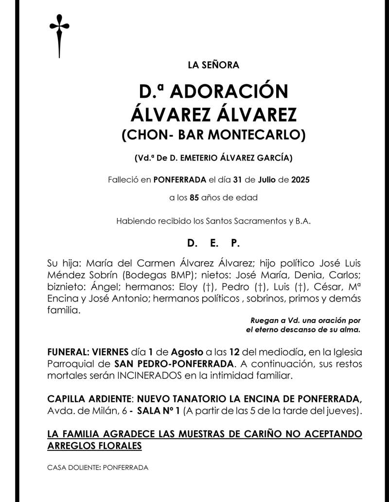 ADORACIÓN ÁLVAREZ ÁLVAREZ (CHON- BAR MONTECARLO)