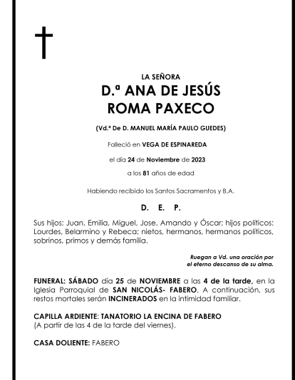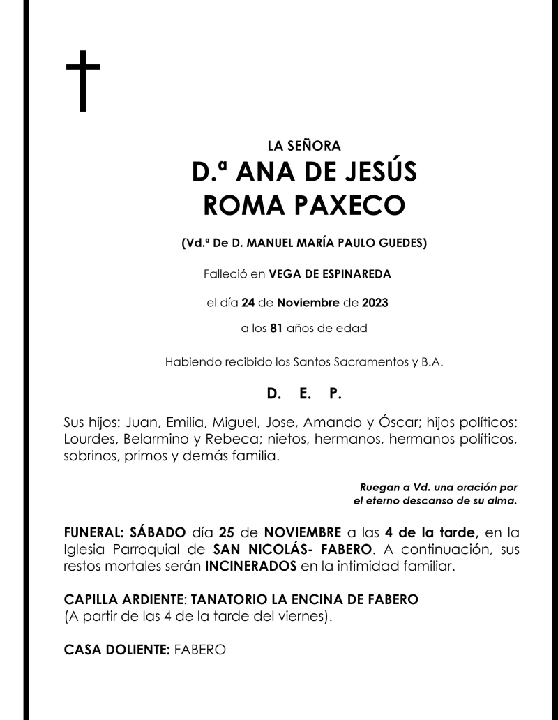 ANA DE JESUS ROMA PAXECO