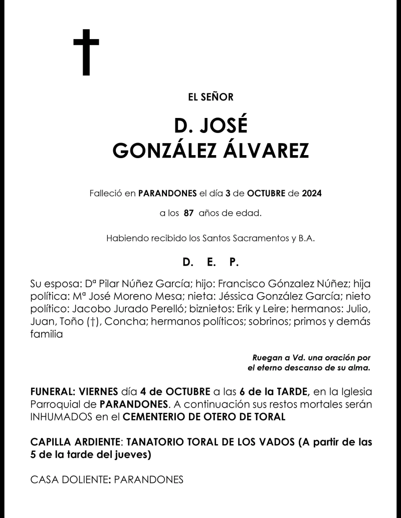 Esquelas JOSE GONZALEZ ALVAREZ Redacción Infobierzo 03 de Octubre de 2024 Comentarios Guardar JOSE GONZALEZ ALVAREZ Temas Esquelas Bierzo Esquelas Ponferrada Esquelas